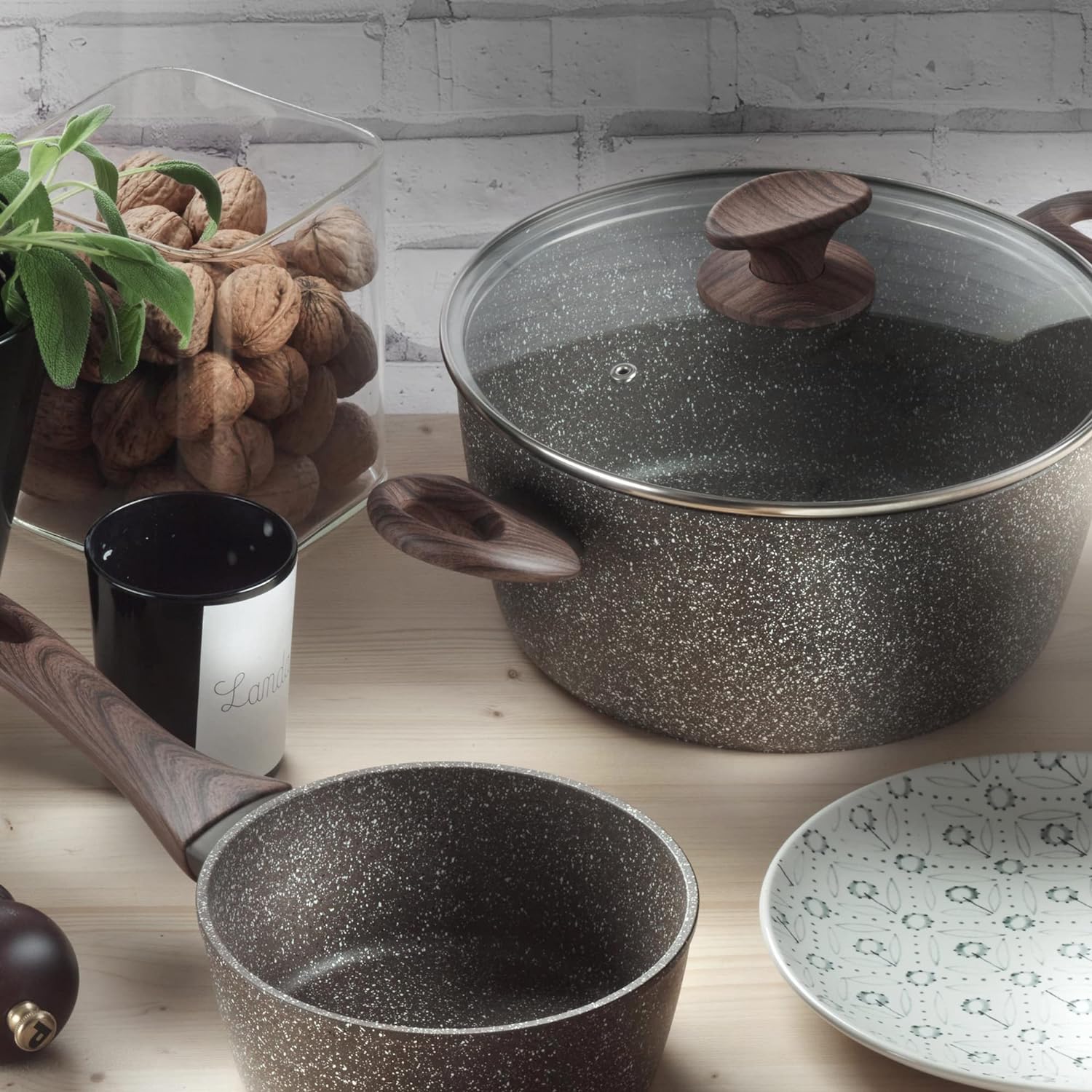 - Kasserolle 26 cm mit Antihaftbeschichtung 2 Schichten Steinoptik