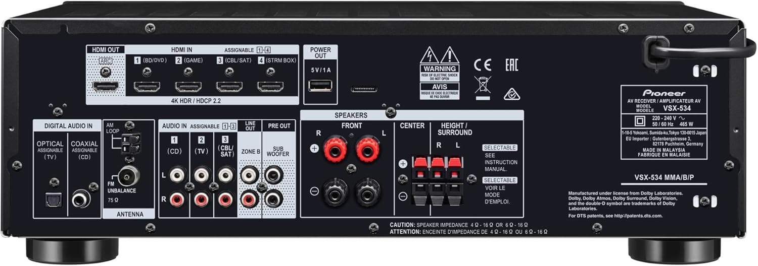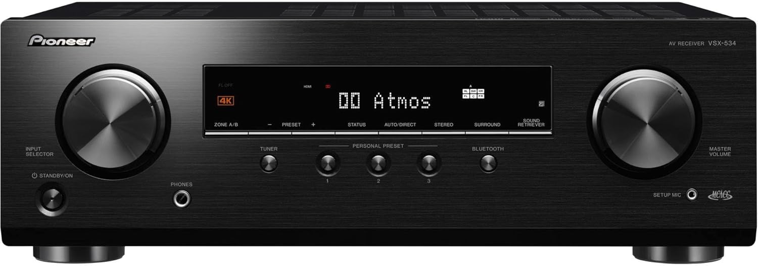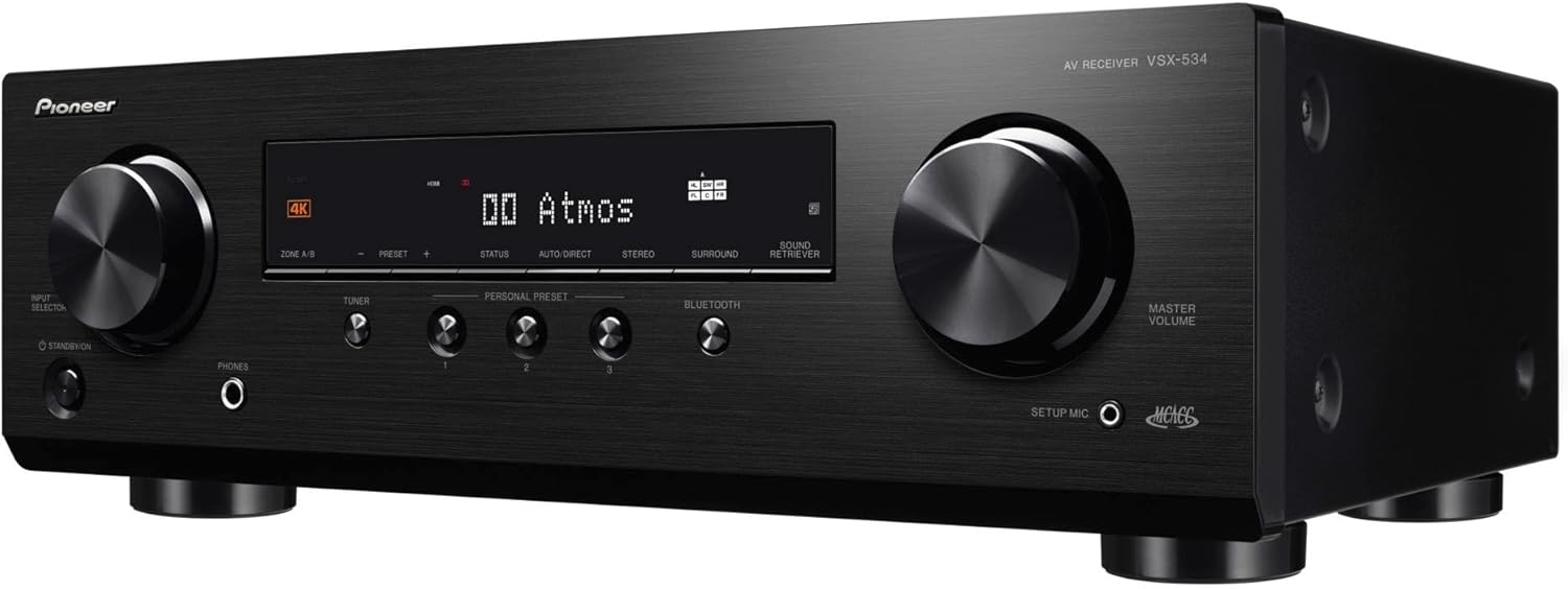 - Pioneer VSX-534(B) Receiver (5x150 Watt, Dolby Atmos, DTS:X, MCACC, Advanced Sound Retriever, AM/FM, Bluetooth, USB) Schwarz