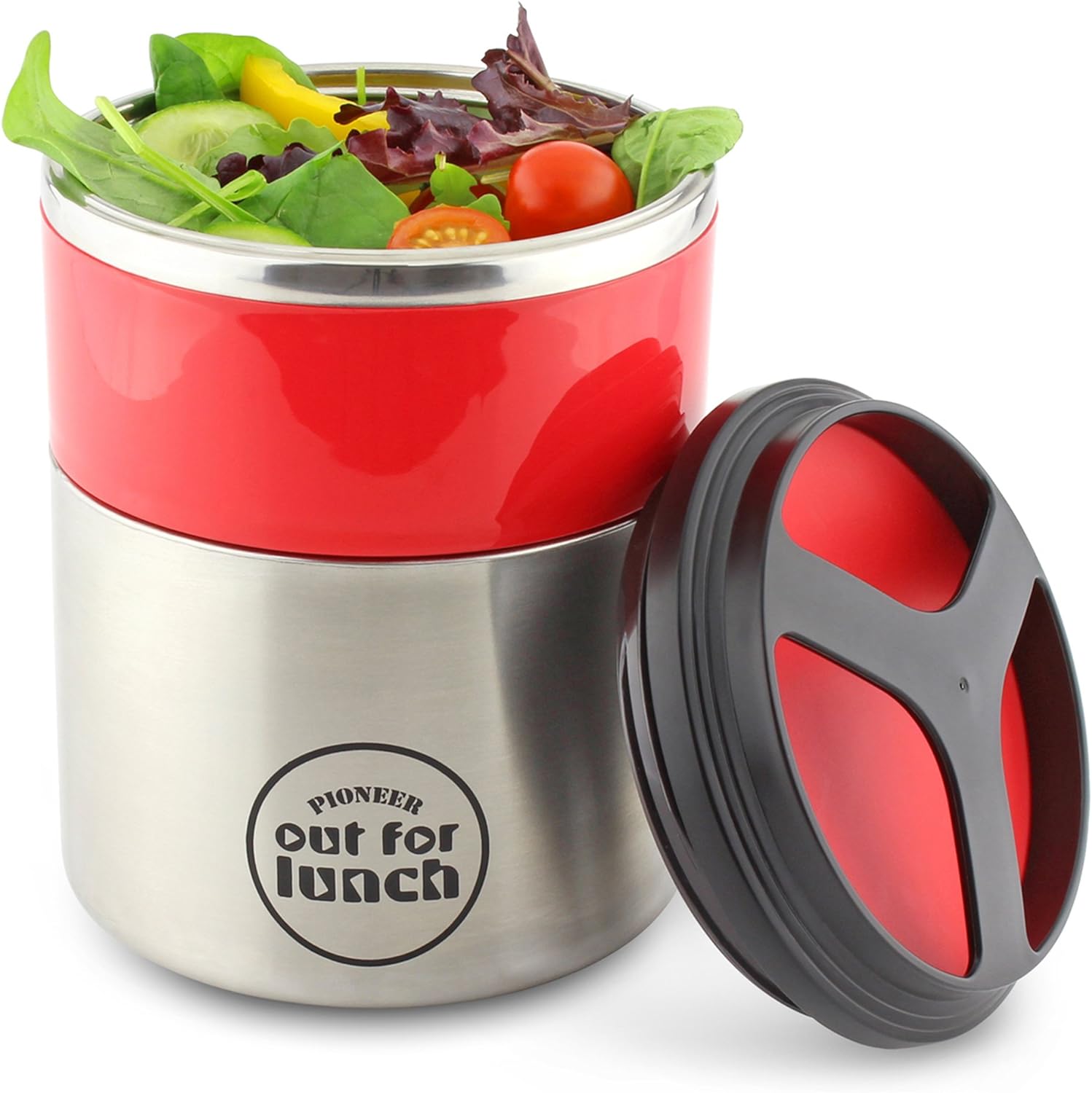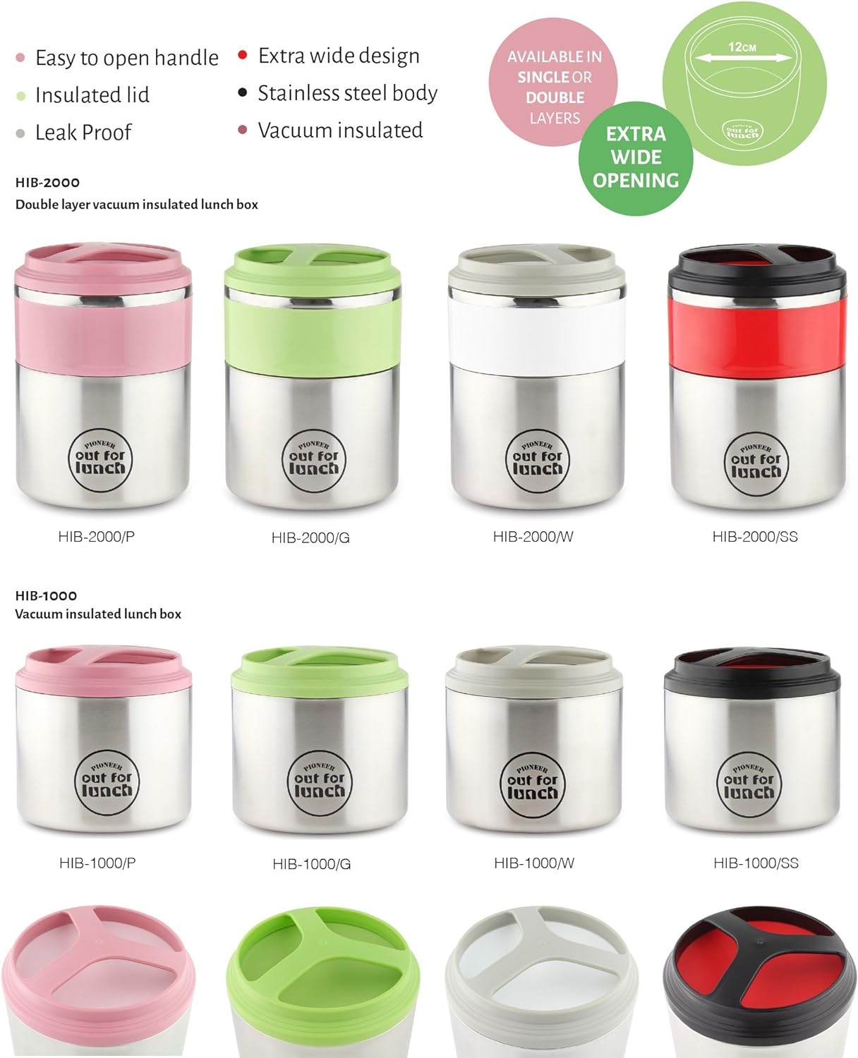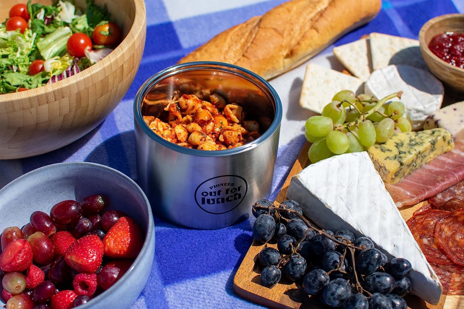 Pioneer Thermo-Speisebehälter 1,5 L Edelstahl Doppelwandig 2-in-1 mit Extra Breiten Öffnung, Isolier