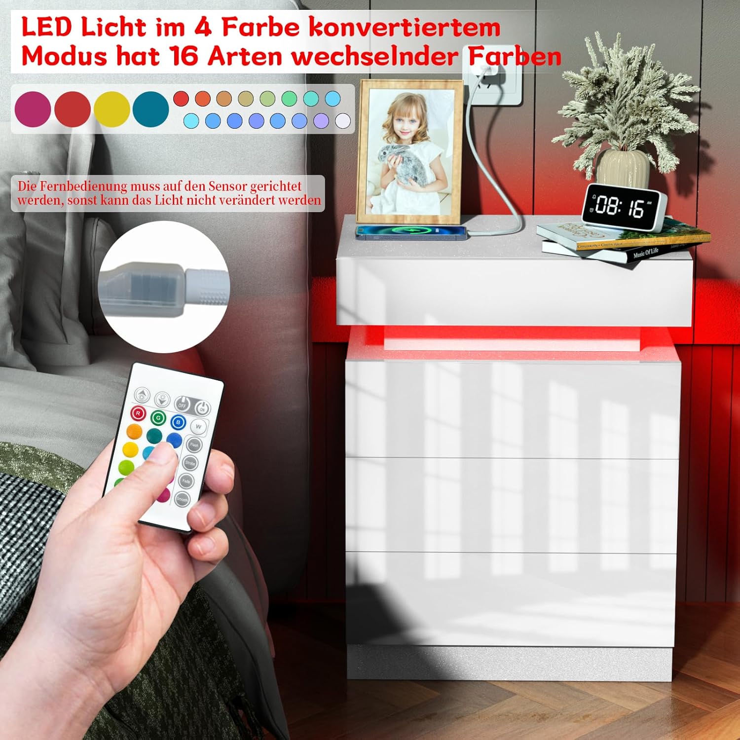 - 【Breite Verwendung】Dieser Nachttisch ist ein Muss für die Heimnutzung. Es kann verwendet werden, um üblicherweise verwendete kleine Objekte zu platzieren und auch als Aktenschrank verwendet werden, die Energie und Elektrizität sparen. Es hat ein