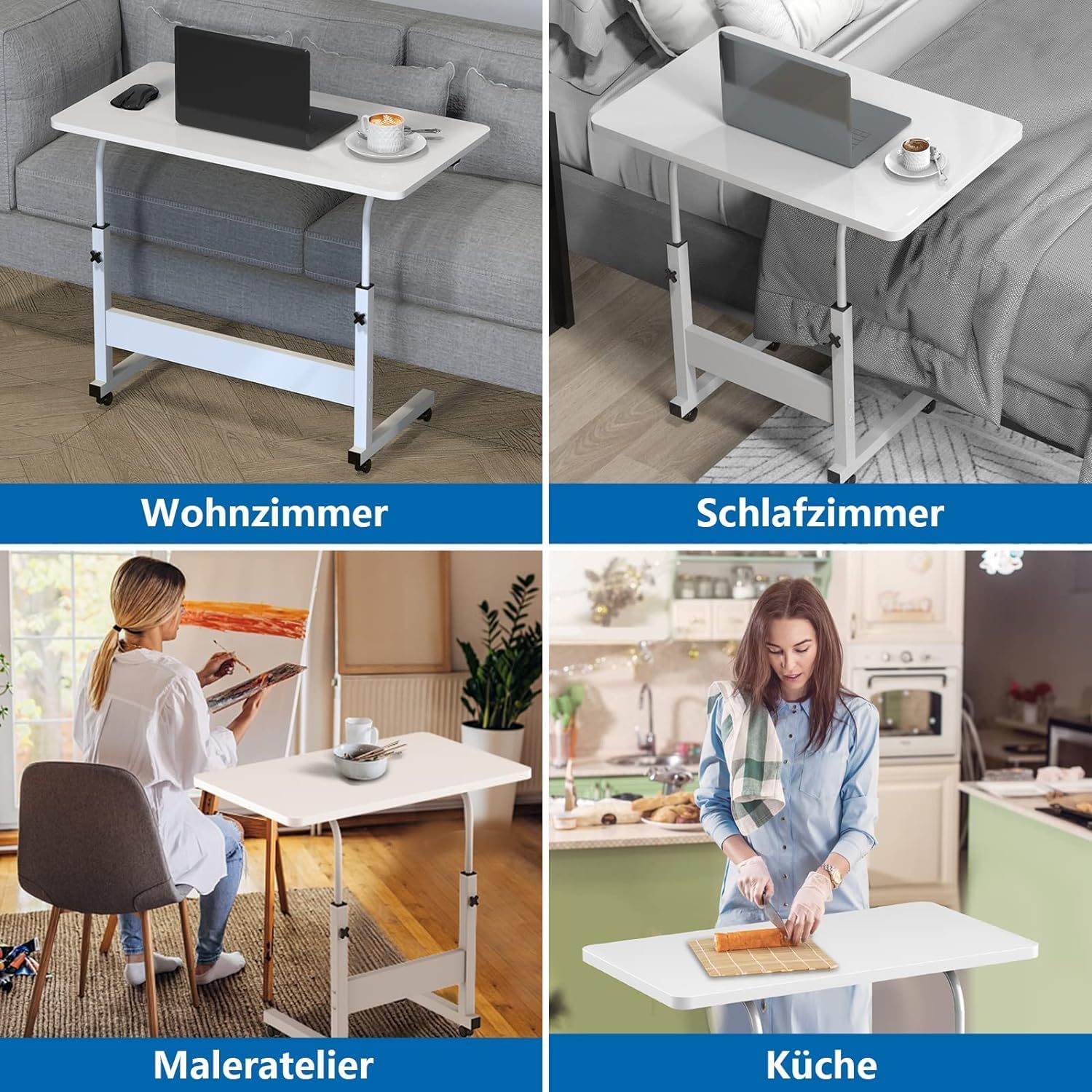 - 【Freie Bewegung】Vier Räder mit Bremse der Schreibtisch sorgen für eine einfache Bewegung im Raum.Computertisch wird an die Wand schieben, und der Beistelltisch nimmt wenig Platz ein und kippt nicht.
