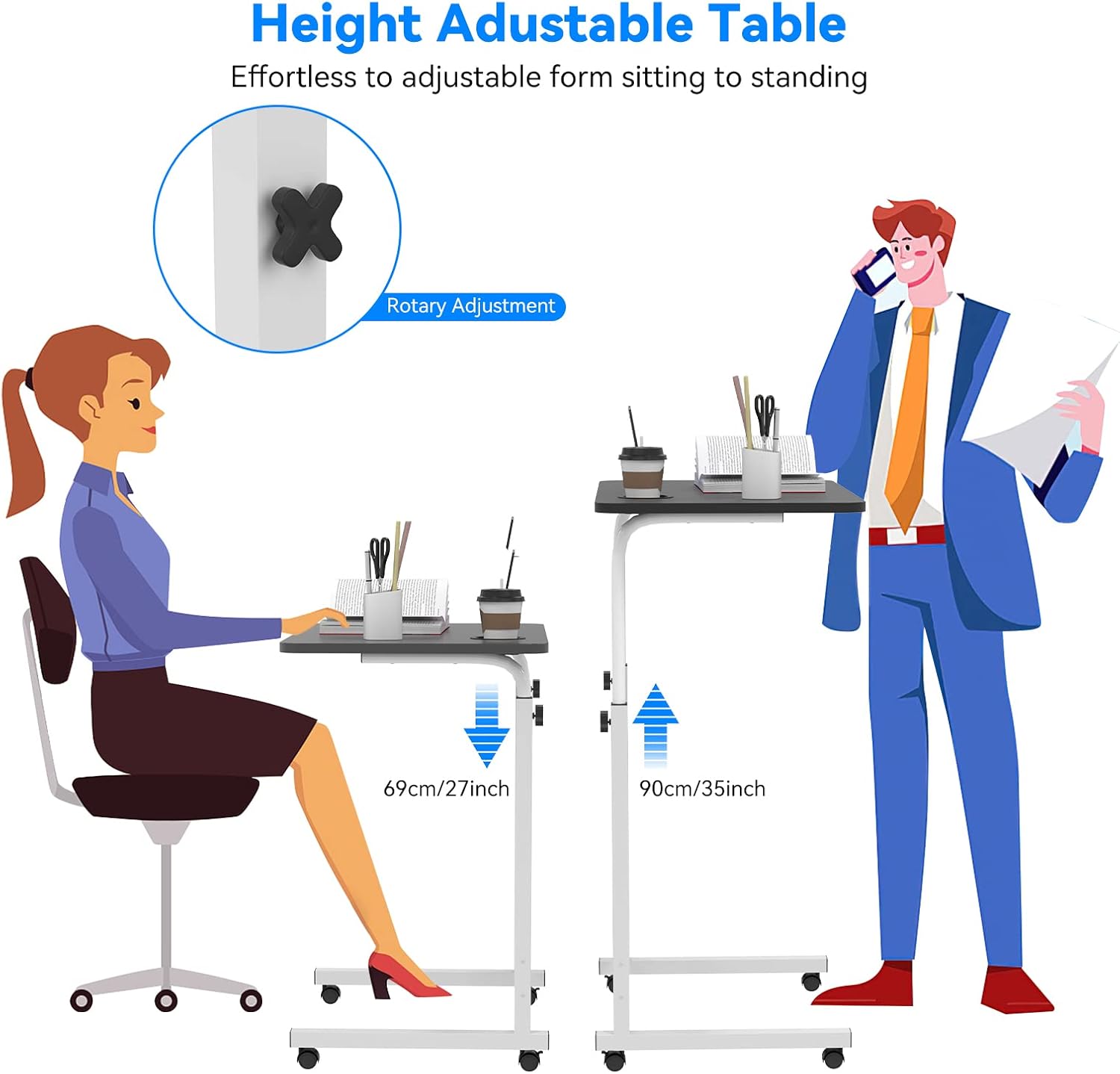 - 【Grosse Geräumige Tischplatte】Der verbesserte mobile Beistelltisch hat eine geräumige Tischplatte von 60*40cm, die sinnvoll verteilt werden kann, um Tablets, Mobiltelefone, Bücher, Kaffee, etc. zu halten. Der Platz auf der Tischplatte ist