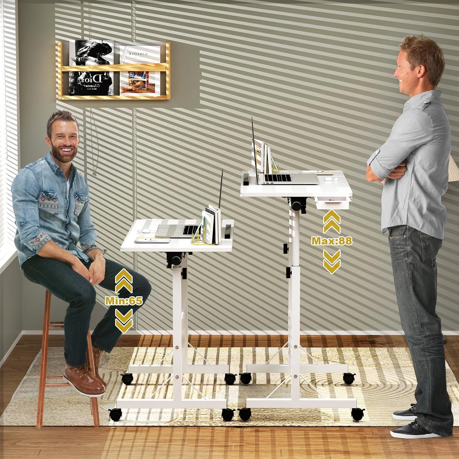 - 【Flexibel höhenverstellbar Tisch】Die Höhenbereich der höhenverstellbarer Schreibtisch lässt sich von 64 bis 89 cm verstellen. Die ideale Grösse für die Holzplatte beträgt 80x40 cm, und es hat eine Schublade in weiss, so lässt er sich jedem