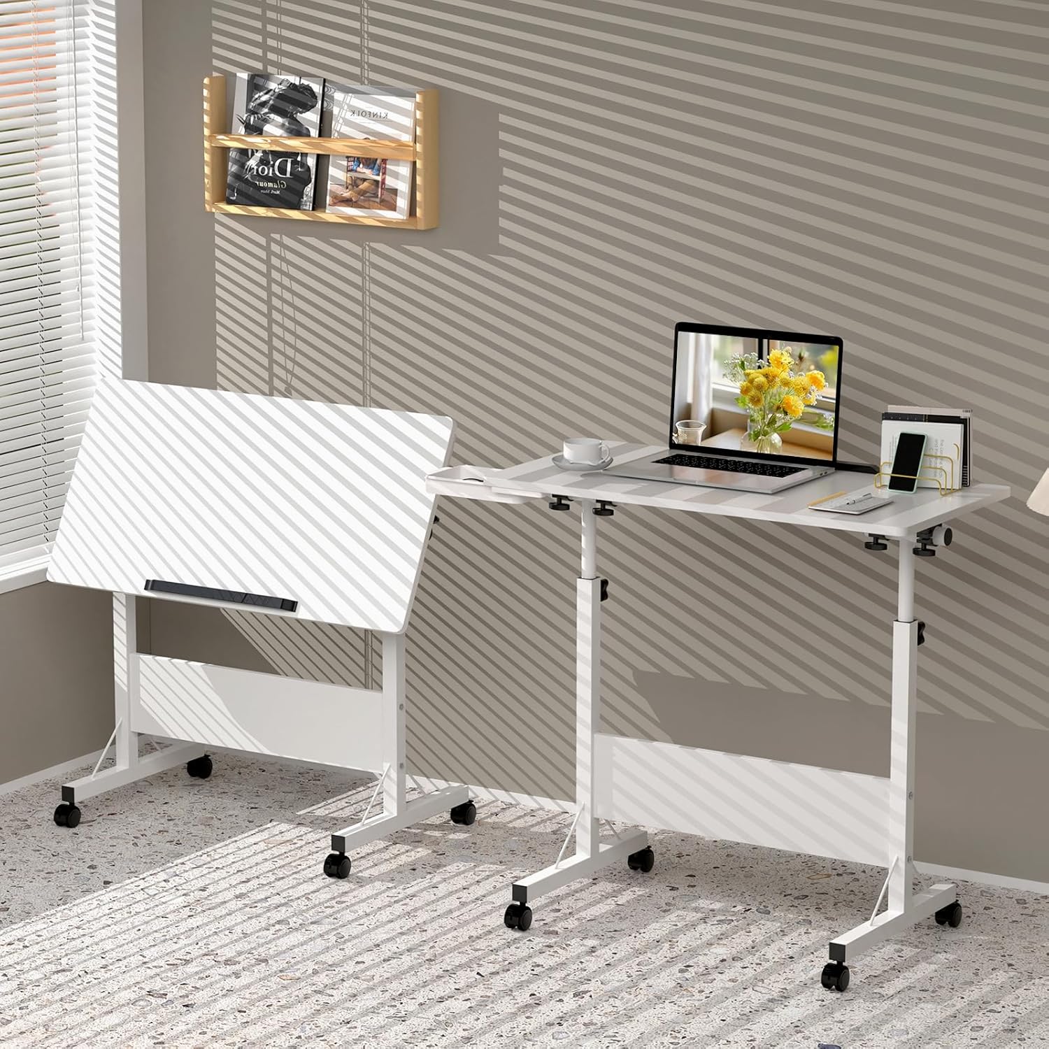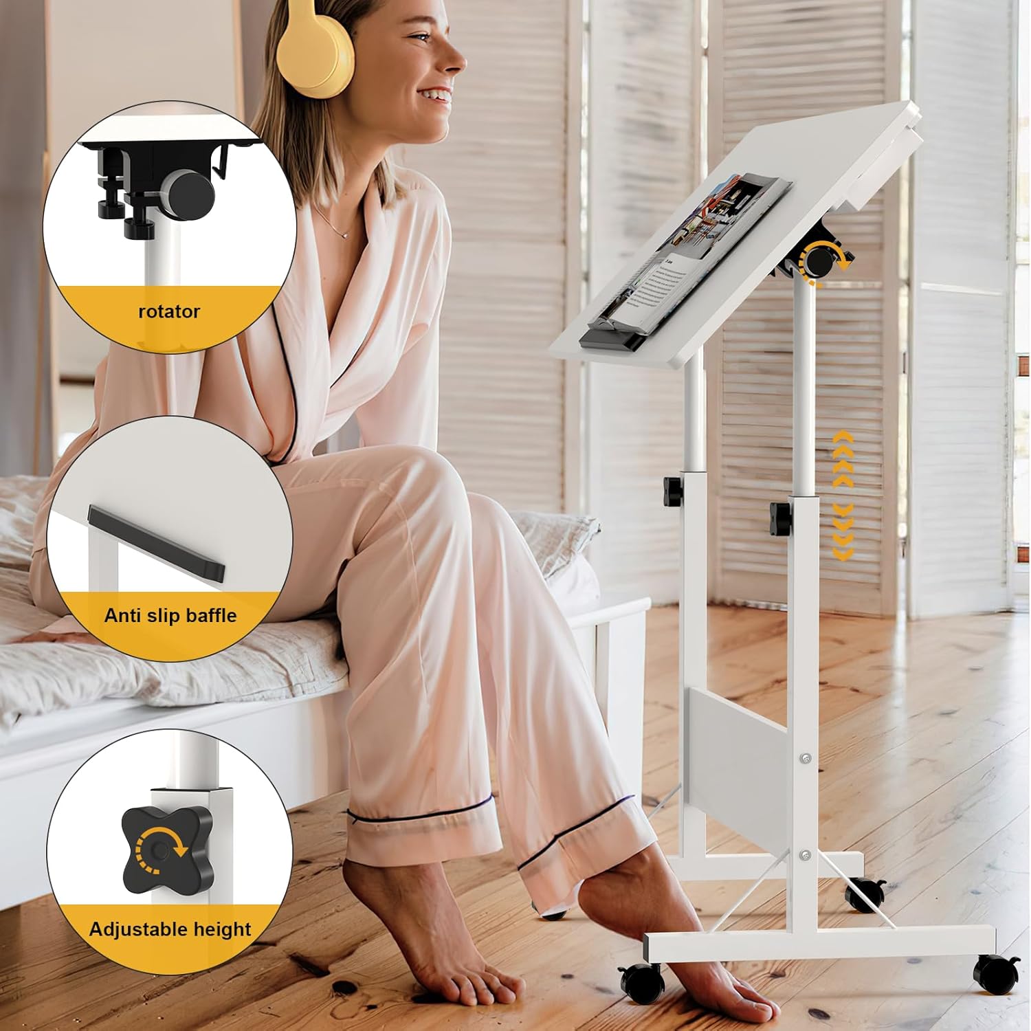 - 【Freie Bewegung】Vier Räder mit Bremse der Schreibtisch sorgen für eine einfache Bewegung im Raum.Computertisch wird an die Wand schieben, und der Beistelltisch nimmt wenig Platz ein und kippt nicht.