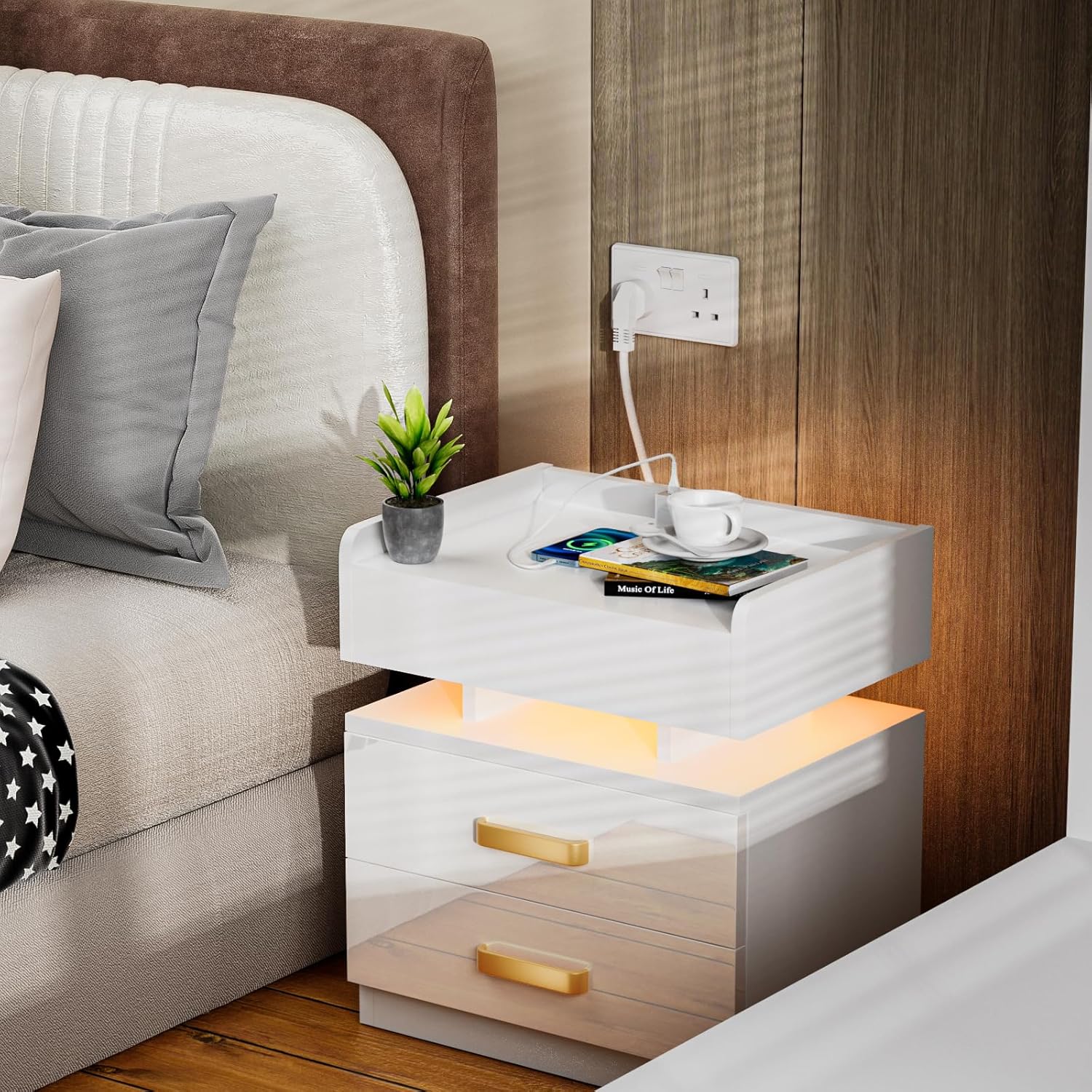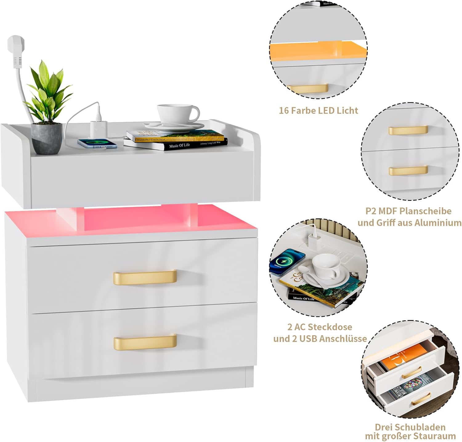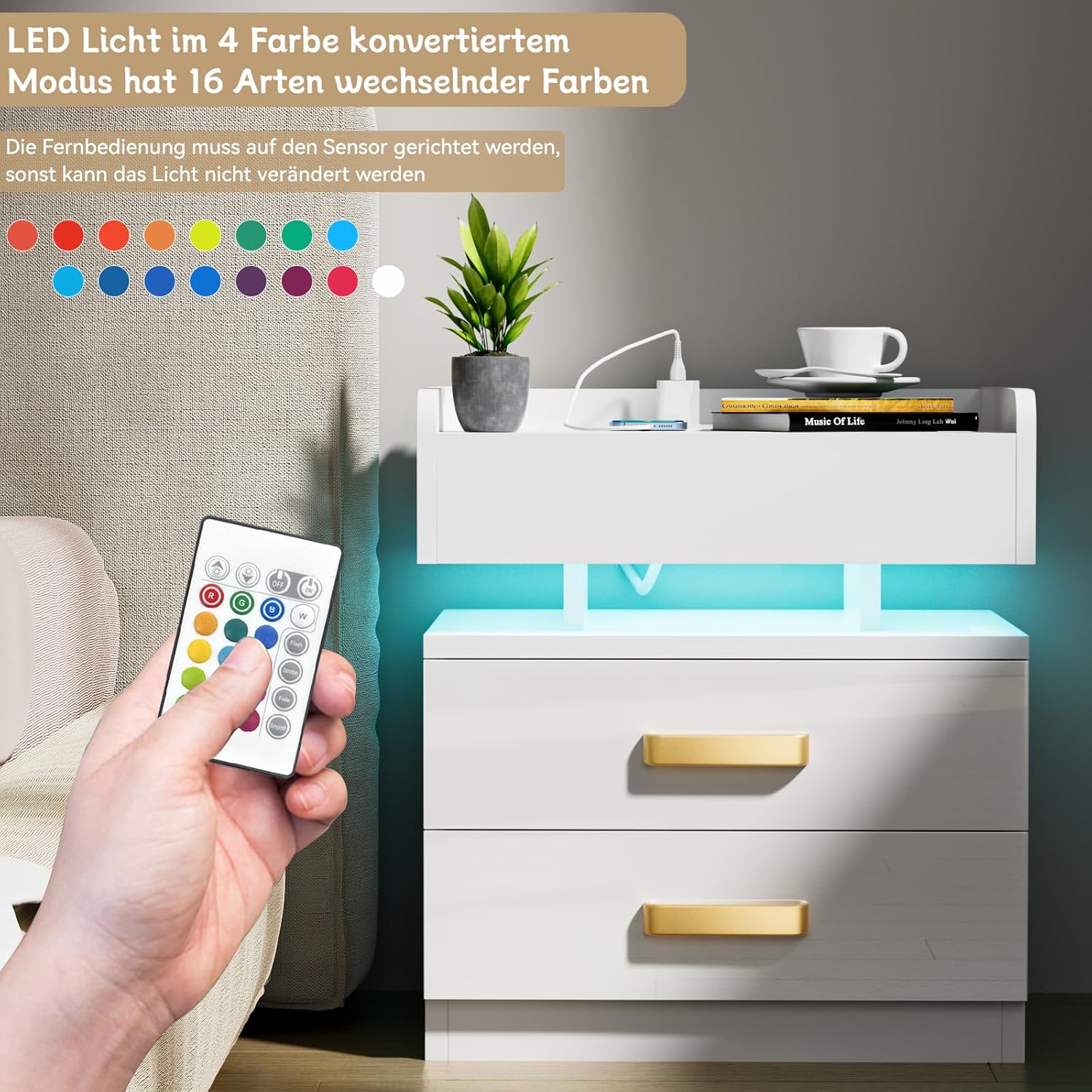 - 【Mit LED Beleuchtung】Dieser Nachttisch hat LED Beleuchtung mit 16 RGB Farben und 4 Beleuchtungseffekten wie Blitz und Verblassen ausgestattet. Und die Anzeigefarbe dieses Nachttisch kann durch Fernbedienung geändert werden.