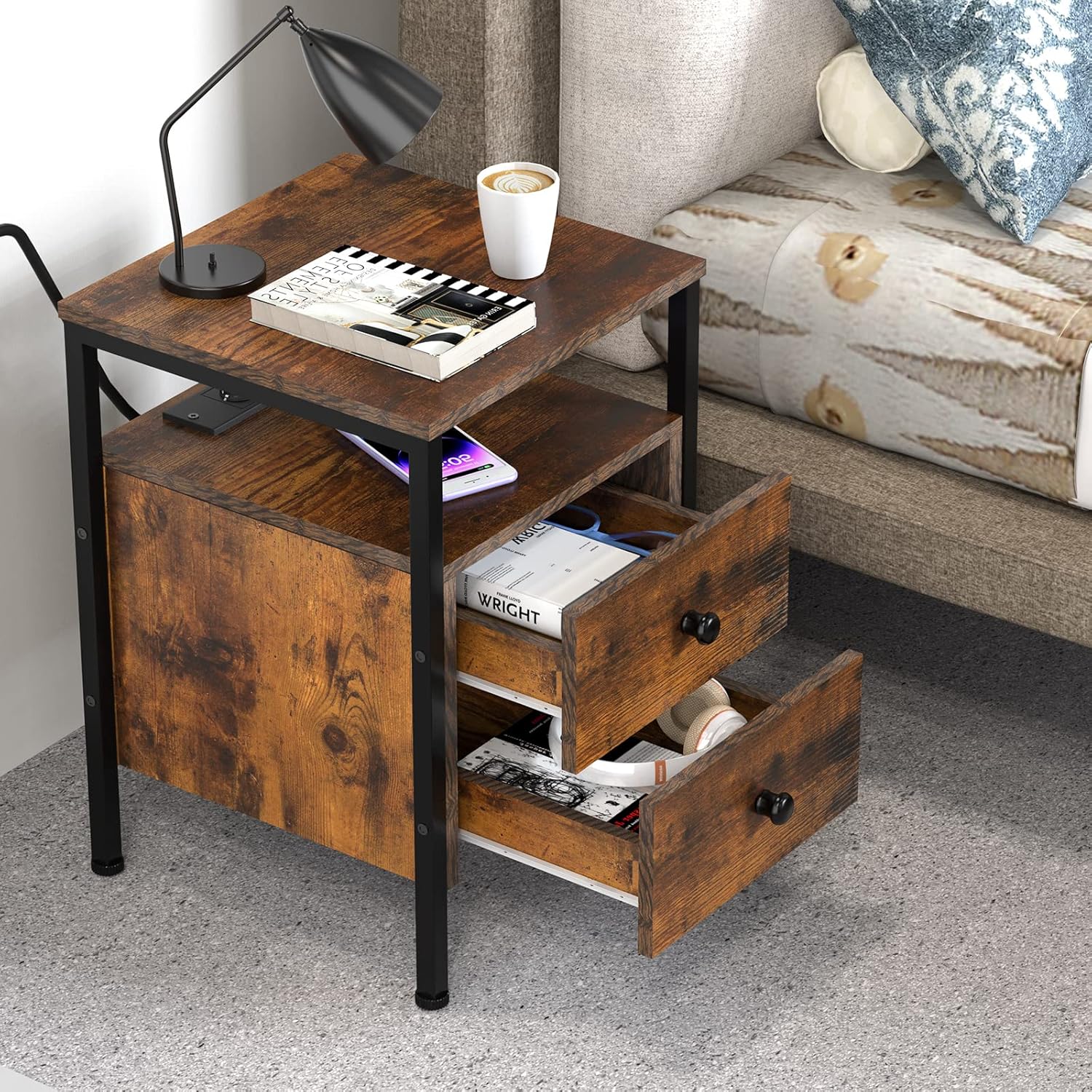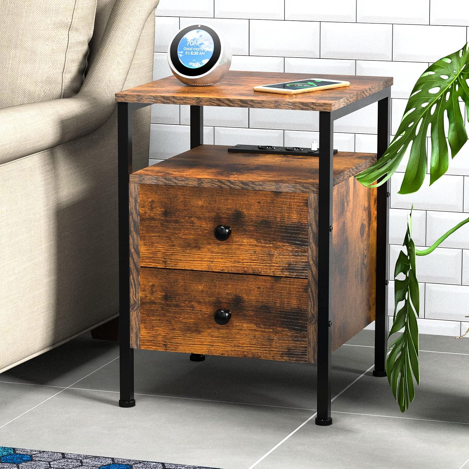 - 【Dieser Nachttisch】Dieser Nachttisch ist mit einen Stecker. Der Stecker ist mit 2 AC Steckdose(Max 230-250V) und 2 USB(Max 5.1V/2.1A) Anschlüsse. Das Kabel ist 1.5 Meter. Dieser Nachttisch mit 2 Schubladen kann alle Ihre Speicher Erforderungen
