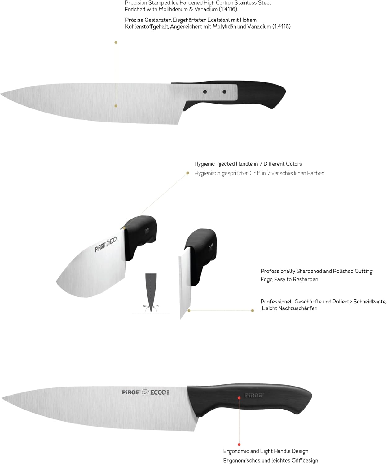 • PIRGE ECCO METZGERMESSER: Ausgestattet mit einer fein gearbeiteten Klinge von 36 mm x 145 mm x 2 mm, die für den professionellen Einsatz konzipiert ist. Der schlanke Griff verleiht nicht nur einen Hauch von Eleganz, sondern sorgt auch für einen