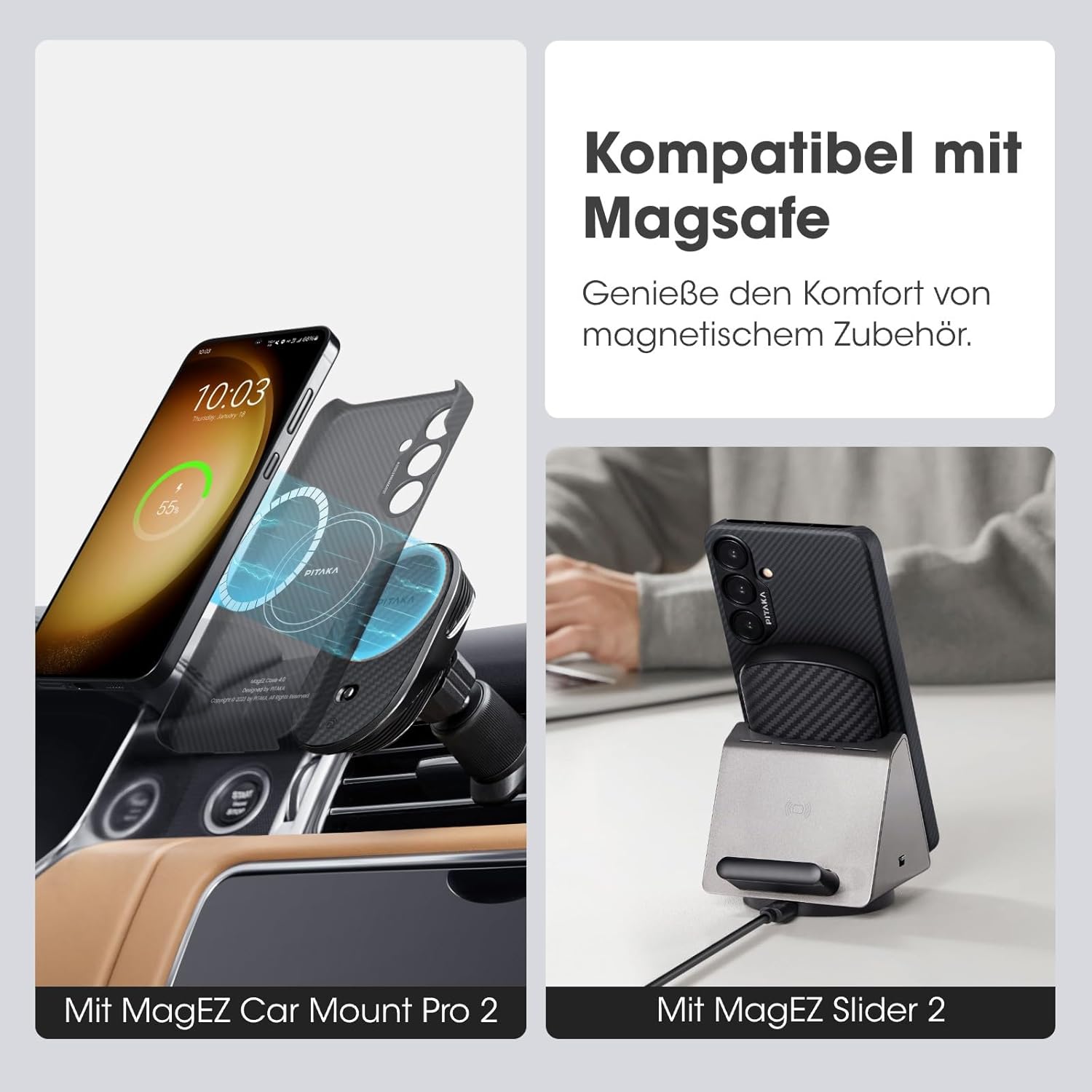 - Starke Magnetkraft: Der eingebaute Magnet ermöglicht die Verwendung mit der PITAKA Autohalterung [MagEZ Car Mount Pro 2] und 3 in 1 Magnetische Ladegeräte [MagEZ Slider 2] kompatibel.