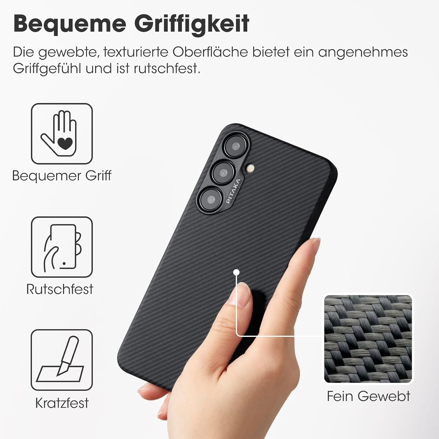 - Aus Aramidfasern in Luftfahrtqualität: Die Hülle besteht aus 100% gewebten Aramidfasern in Luftfahrtqualität und bietet Ihnen ein leichtes und dünnes Tragegefühl, während Ihr Handy vor Abnutzung geschützt wird.