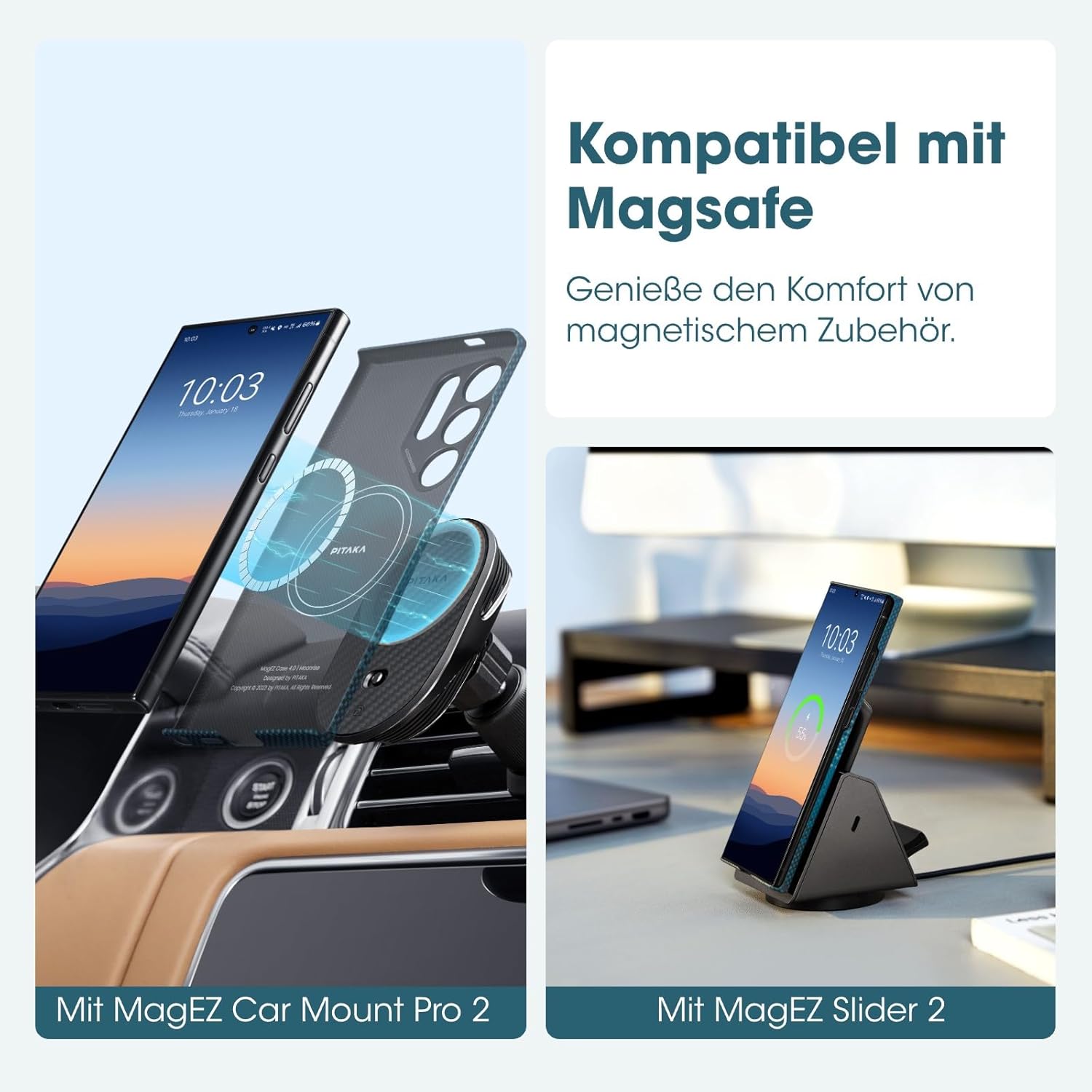 • Starke Magnetkraft: Der eingebaute Magnet ermöglicht die Verwendung mit der PITAKA Autohalterung [MagEZ Car Mount Pro 2] kompatibel. Mit PITAKA Handy Ring Halterung [MagEZ Grip 2] Mondaufgang bringen Sie Ihren Stil zur Geltung.