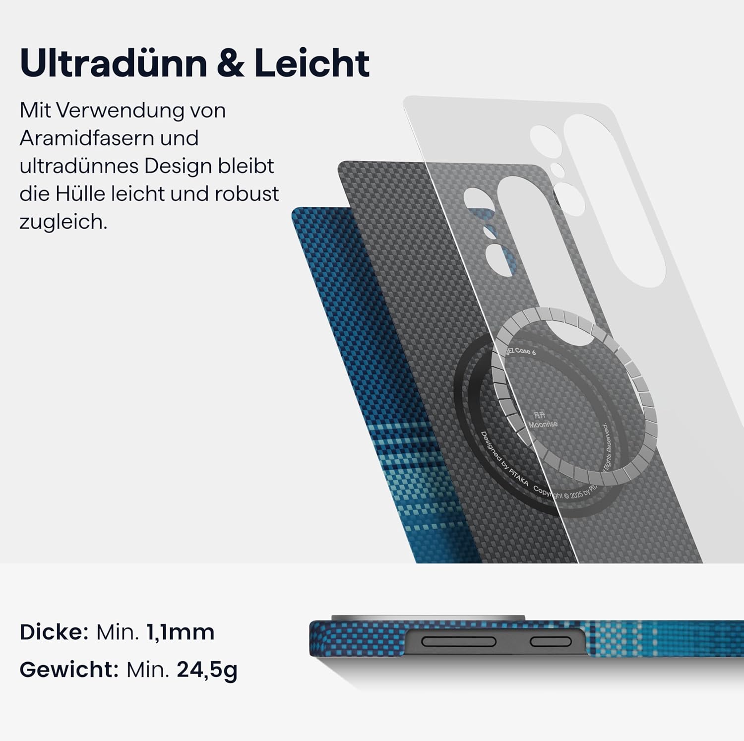 pitaka Hülle für Samsung Galaxy S25 Ultra Ultradünne Handyhülle aus Aramidfaser Magnetische Schutzhü