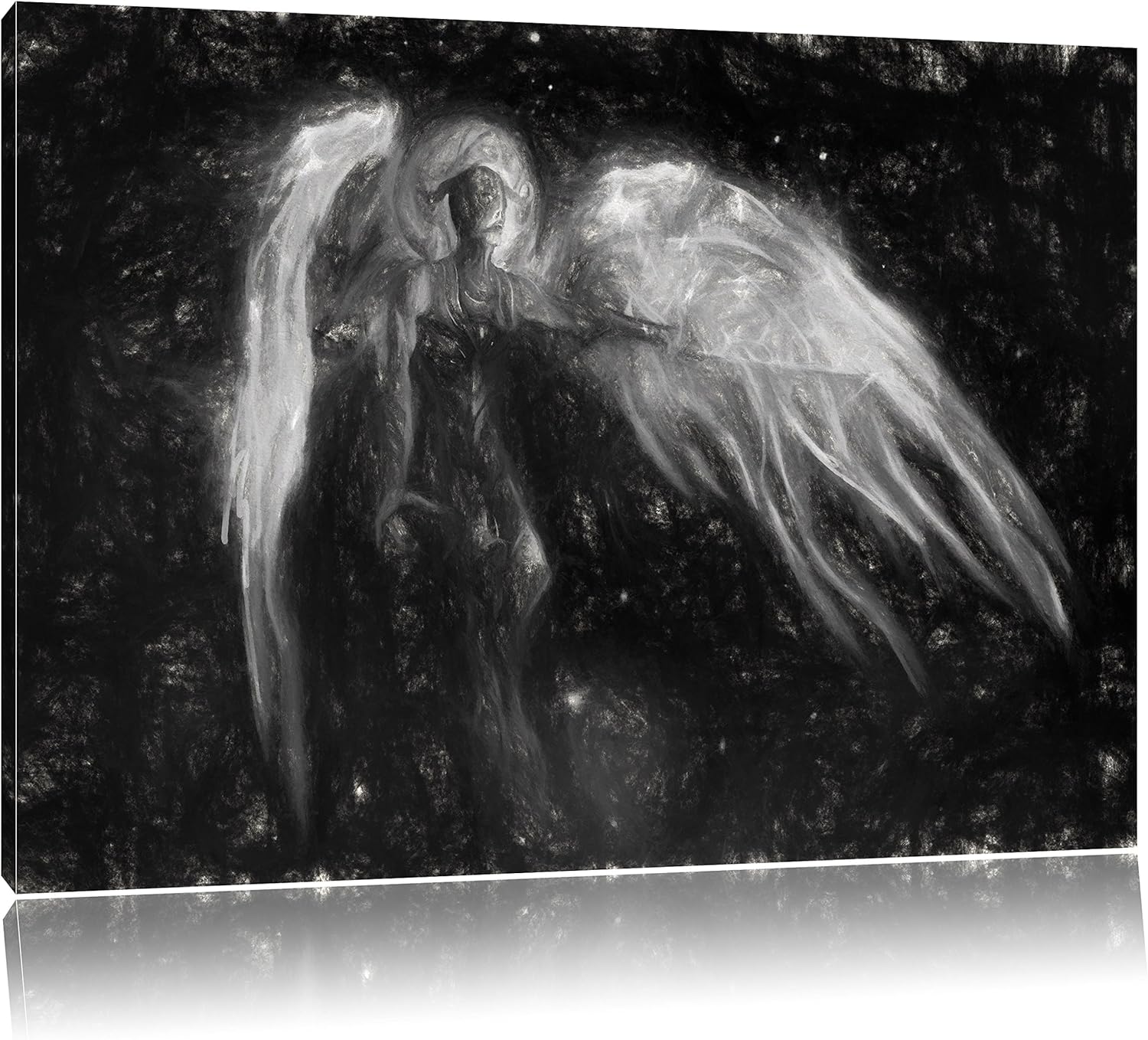 Pixxprint Alien Teufel im Weltraum Kunst Kohle Effekt, Format: 100x70 auf Leinwand, XXL riesige Bild