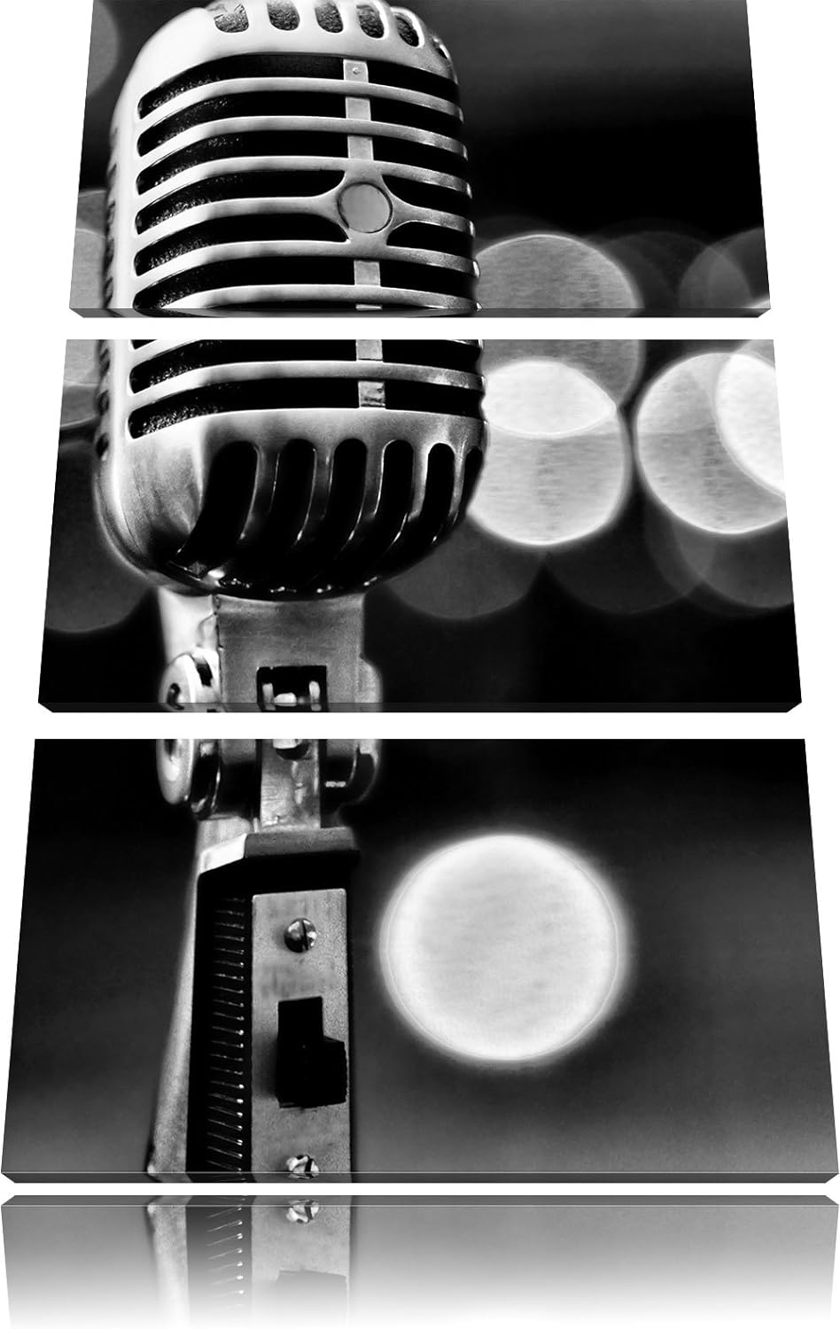 Pixxprint Altes Retro Mikrofon als Leinwandbild/Grösse: 3 Teilig (120x80 cm) cm/Wandbild/Kunstdruck/