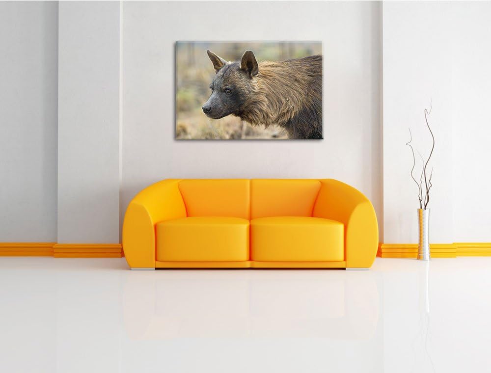 Pixxprint anmutige Hyäne im Wildgras auf Leinwand, XXL riesige Bilder fertig gerahmt mit Keilrahmen,