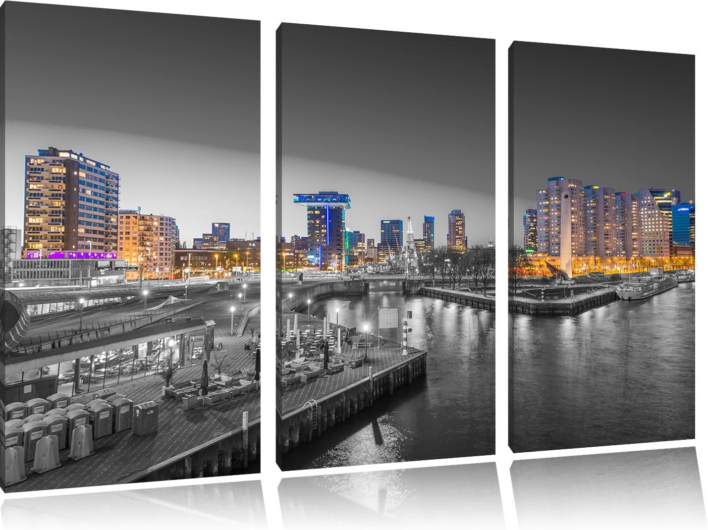 Pixxprint Ausblick auf Rotterdam als Leinwandbild/Grösse: 3 Teilig (120x80 cm) cm/Wandbild/Kunstdruc