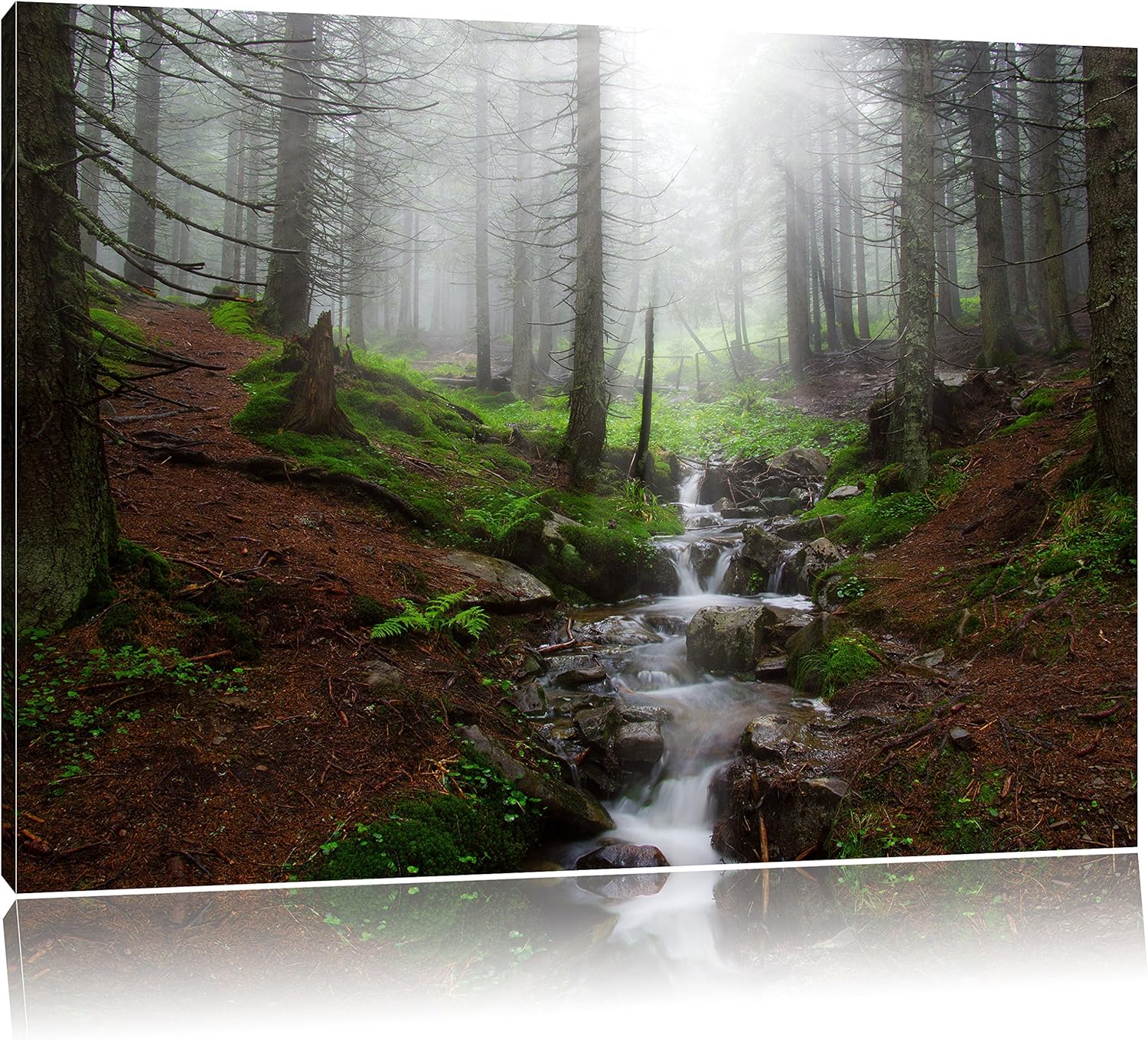 Pixxprint Bach im Wald, Format: 100x70 auf Leinwand, XXL riesige Bilder fertig gerahmt mit Keilrahme
