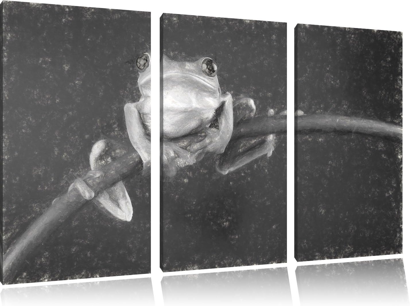 Pixxprint Baum-Frosch auf Bambus Kunst / 3-Teilig/Gesamtmass 120cm Leinwandbild bespannt auf Holzrah