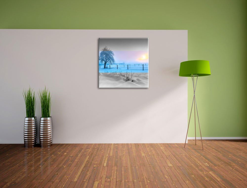 Pixxprint Baum in Winterlandschaft als Leinwandbild | Grösse: 70x70 cm | Wandbild | Kunstdruck | fer