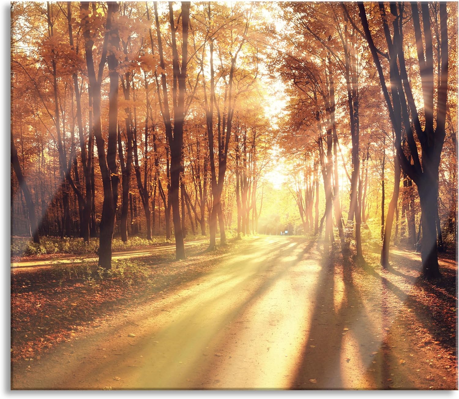Baumallee im Herbst Herdabdeckplatte & Spritzschutz aus Echtglas | Für Herd-Kochfelder | 60x52 cm