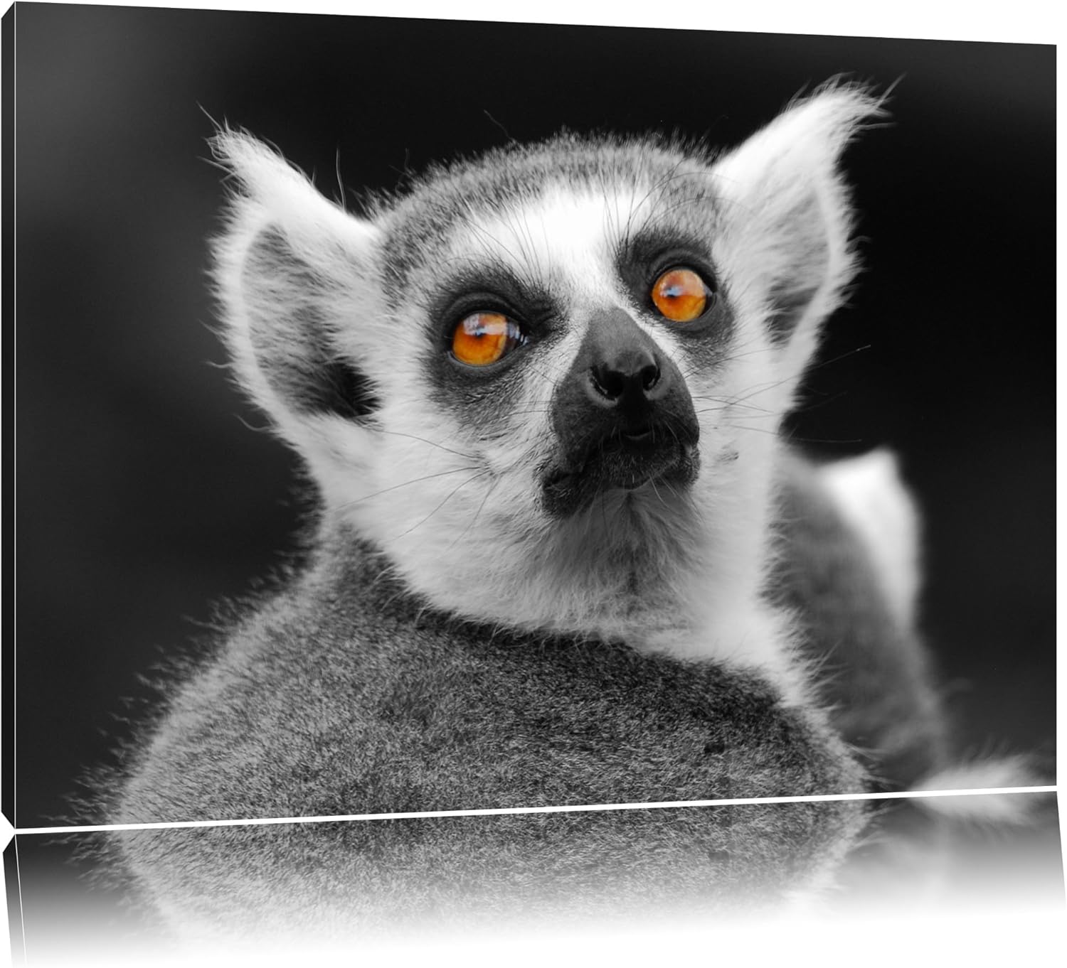 Pixxprint bildschöner Katta schwarz/weiss auf Leinwand, XXL riesige Bilder fertig gerahmt mit Keilra
