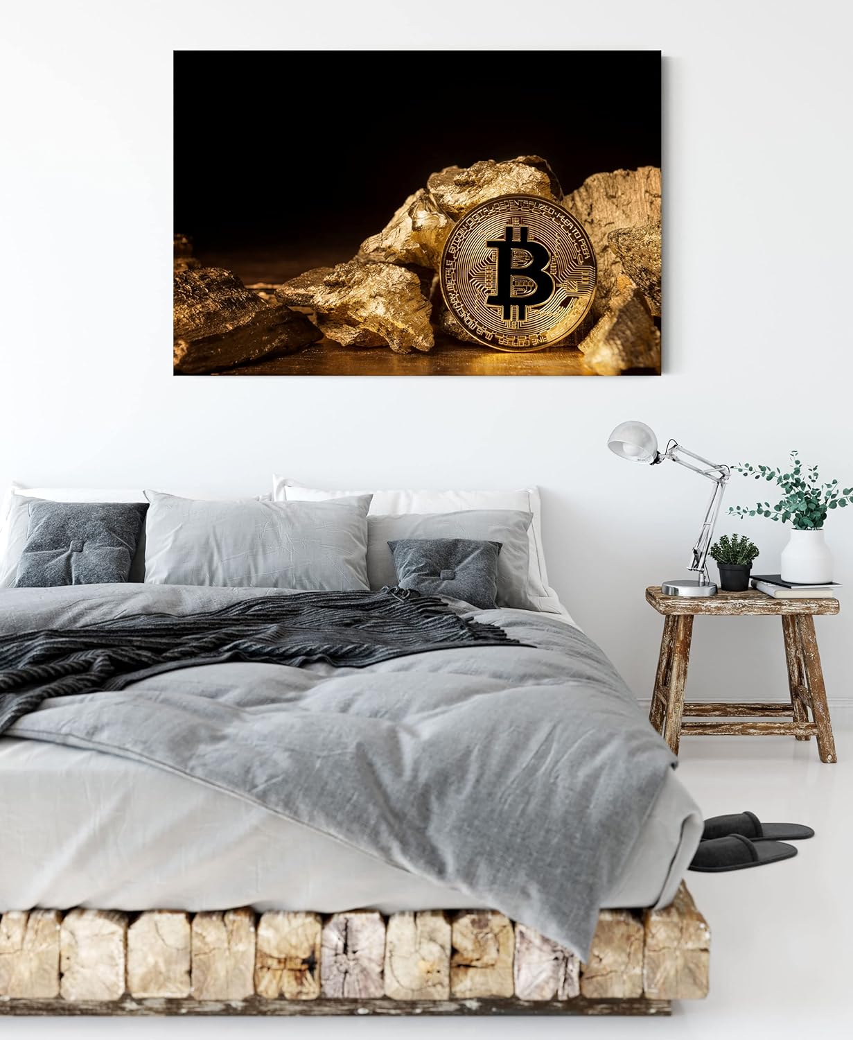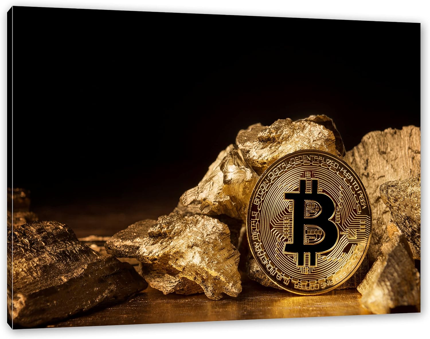 Pixxprint Bitcoins BTC als Leinwandbild | Grösse: 100x70 cm | Wandbild | Kunstdruck | fertig bespann