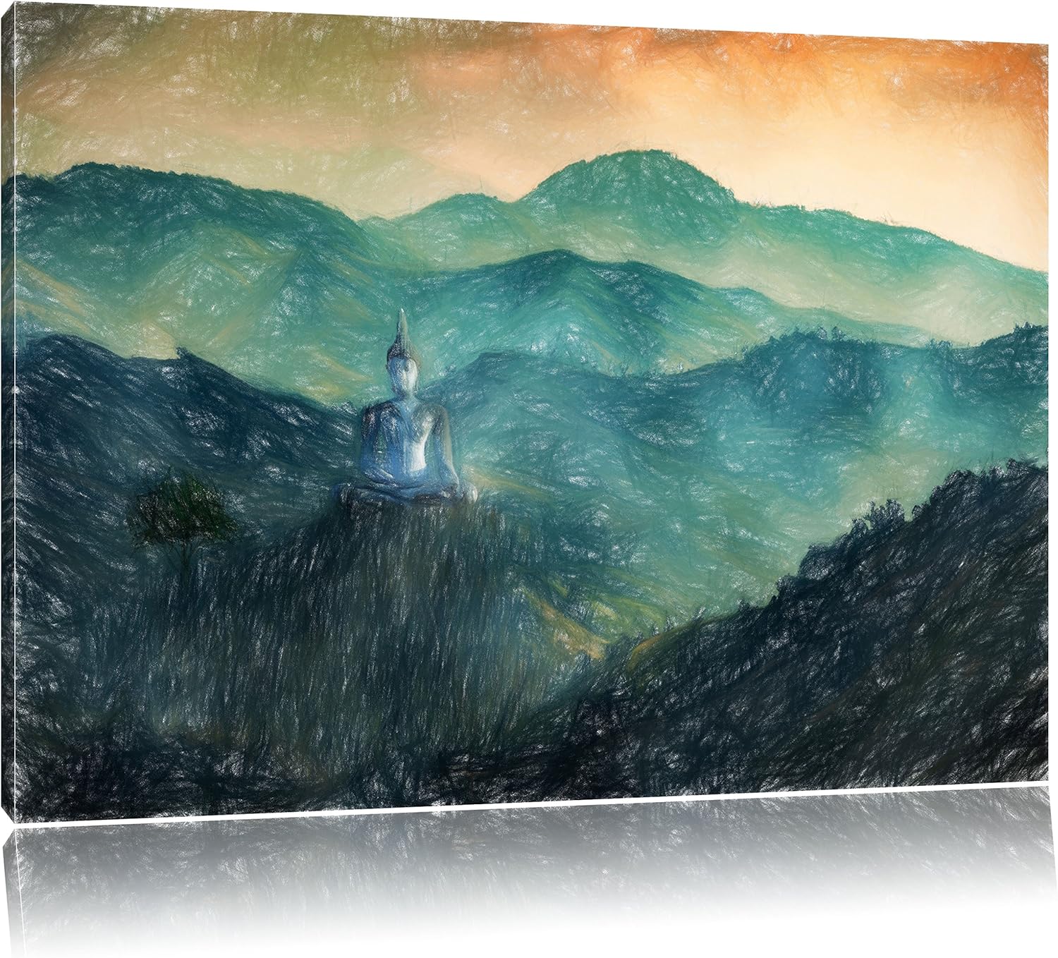 Pixxprint Buddha / 100x70cm Leinwandbild bespannt auf Holzrahmen/Wandbild Kunstdruck Dekoration, 100
