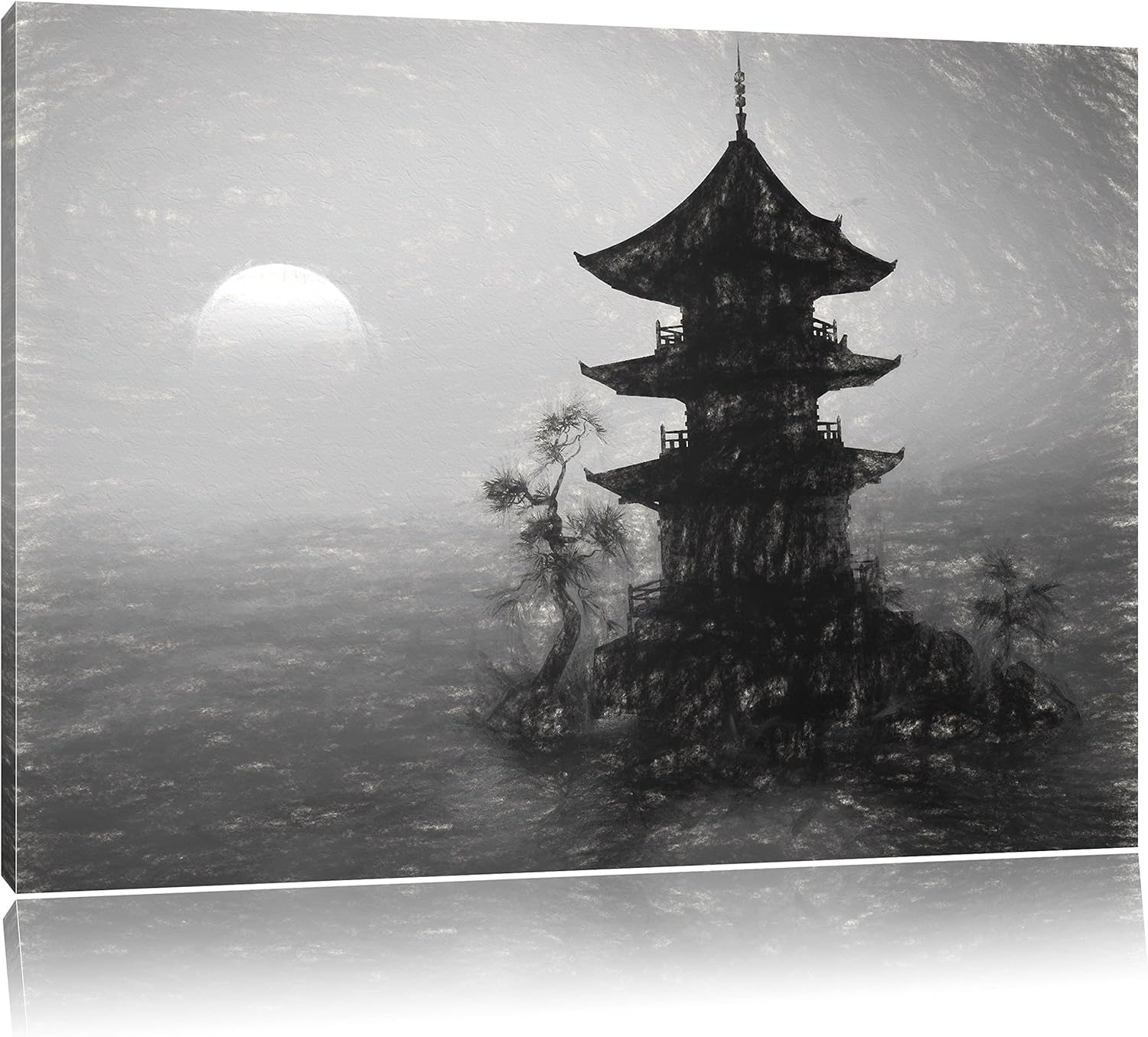 Pixxprint Buddhistischer Tempel in Asien / 100x70cm Leinwandbild bespannt auf Holzrahmen/Wandbild Ku