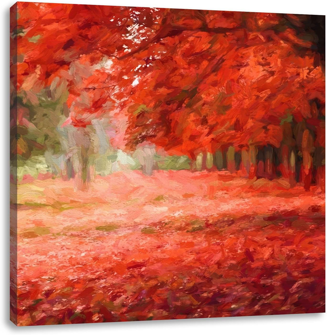 Pixxprint Bunt gefärbter Park im Herbst, Format: 70x70 auf Leinwand, 70x70