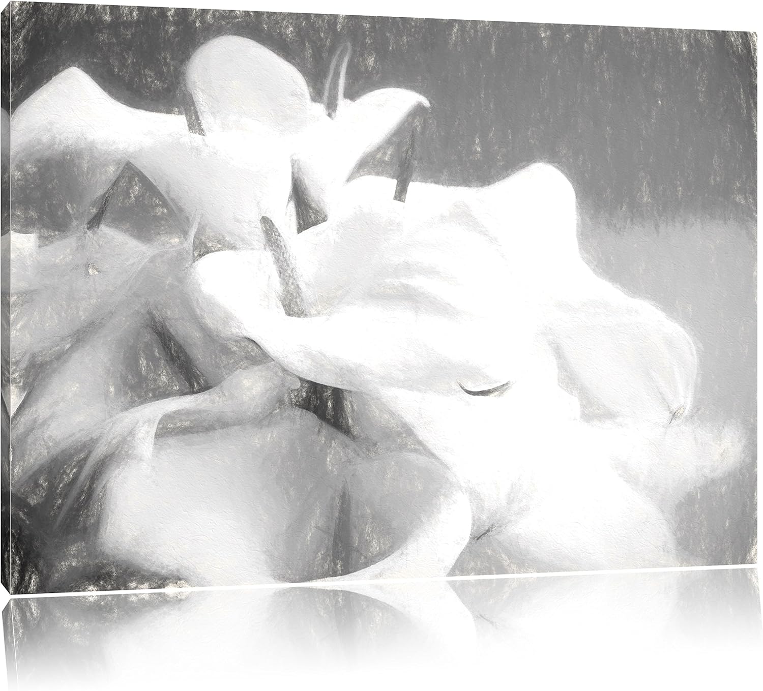 Pixxprint Calla Lilien / 100x70cm Leinwandbild bespannt auf Holzrahmen/Wandbild Kunstdruck Dekoratio