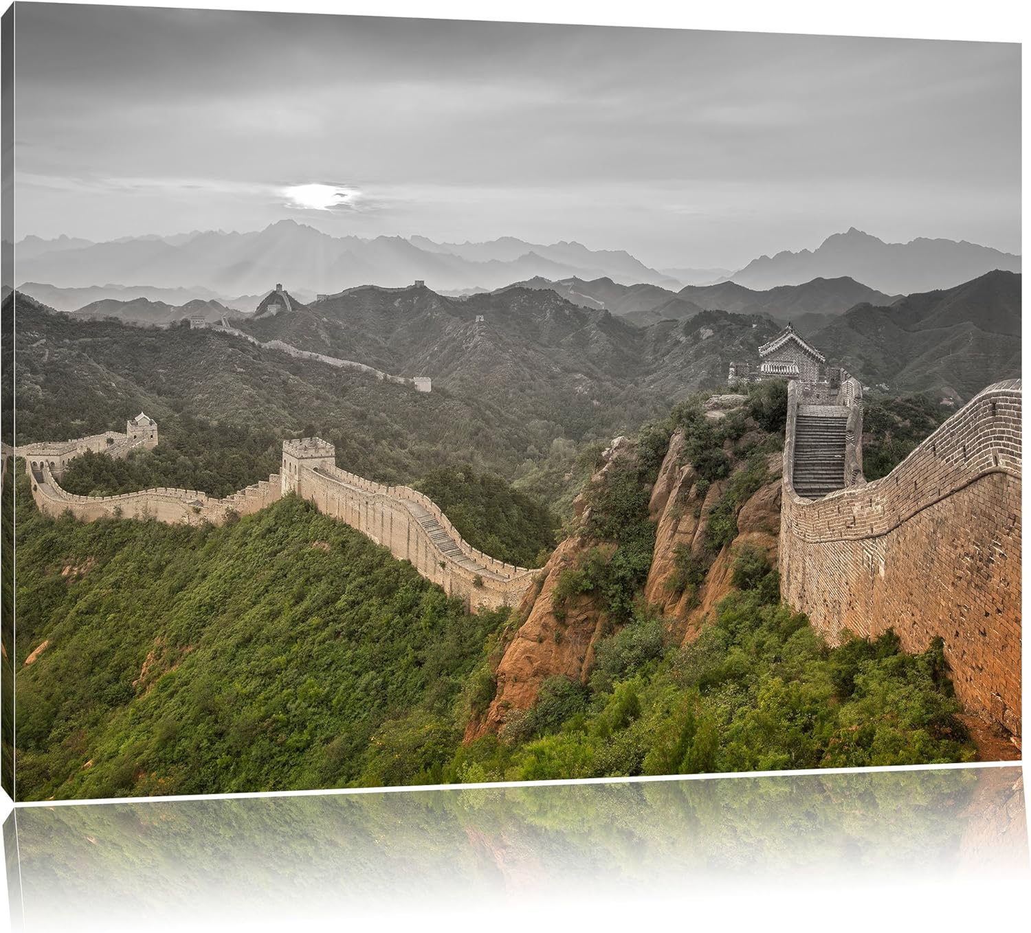 Pixxprint Chinesische Mauer B&W Detail, Format: 100x70 auf Leinwand, 100x70