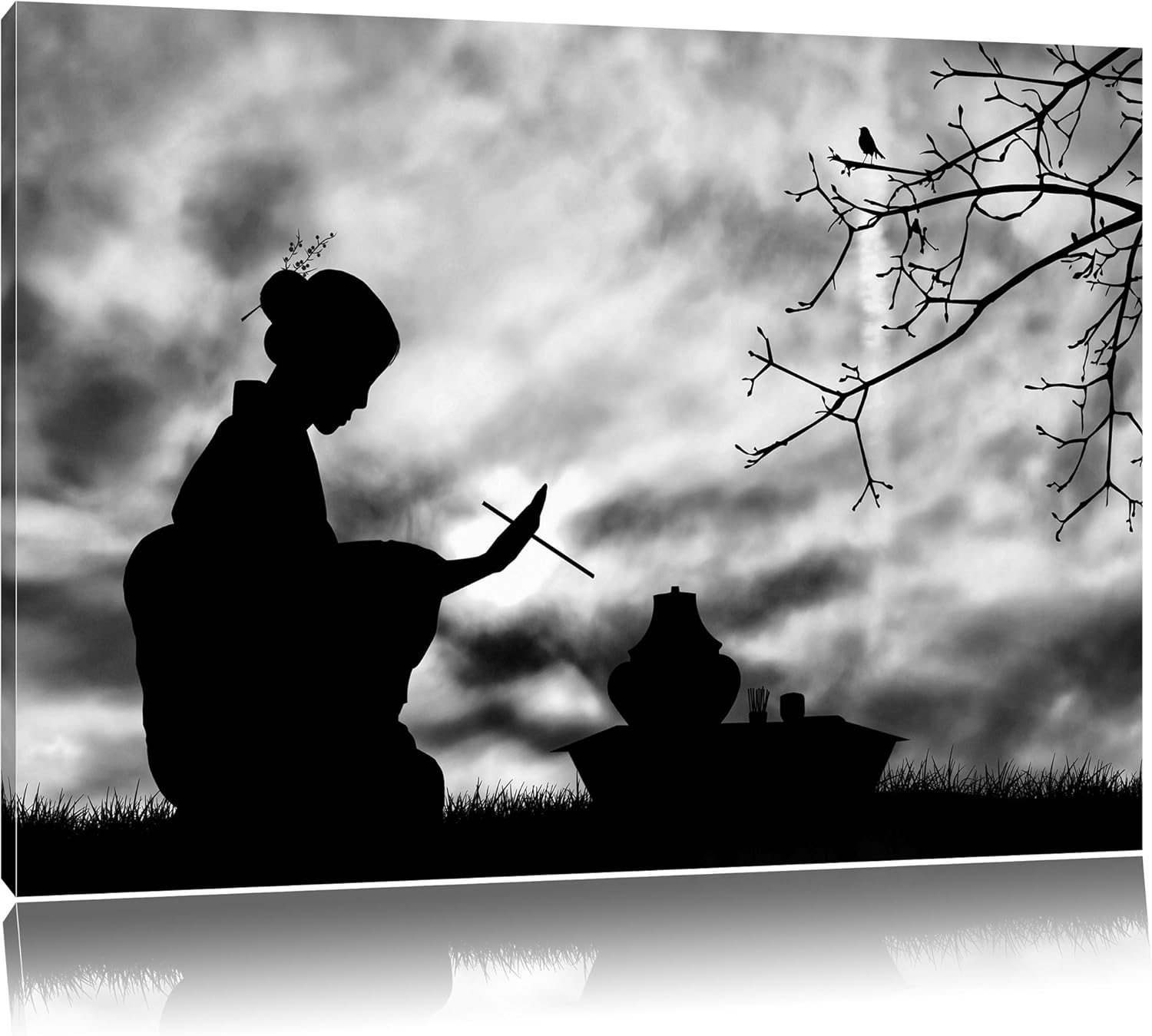Pixxprint Dark Gesha Teezerenomie als Leinwandbild/Grösse: 100x70 cm/Wandbild/Kunstdruck/fertig besp