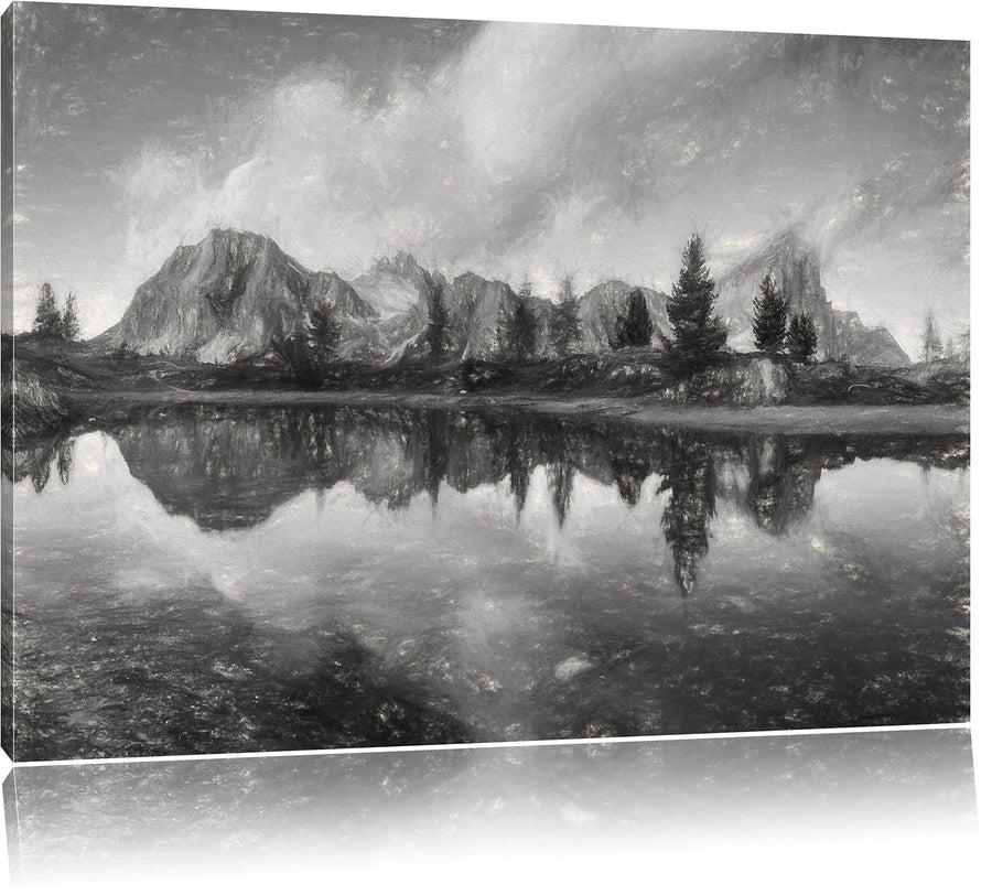Pixxprint Dolomiten am See Limides / 100x70cm Leinwandbild bespannt auf Holzrahmen/Wandbild Kunstdru
