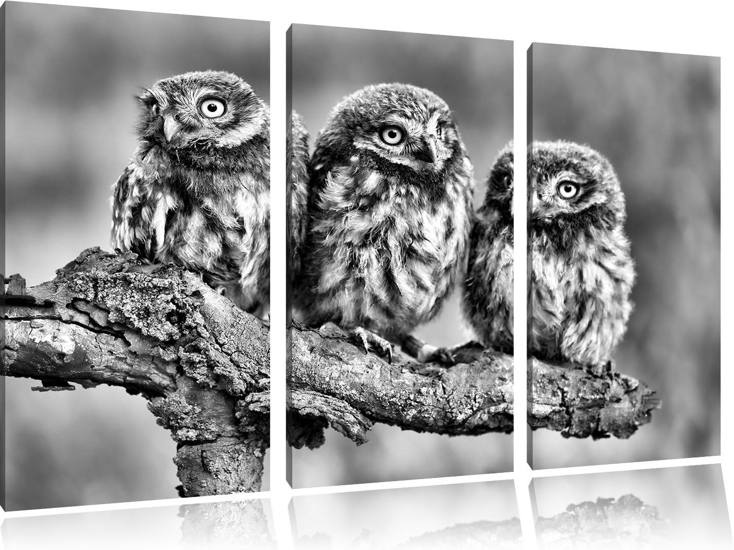 Pixxprint DREI Eulen auf AST als Leinwandbild/Grösse: 3 Teilig (120x80) cm/Wandbild/Kunstdruck/ferti