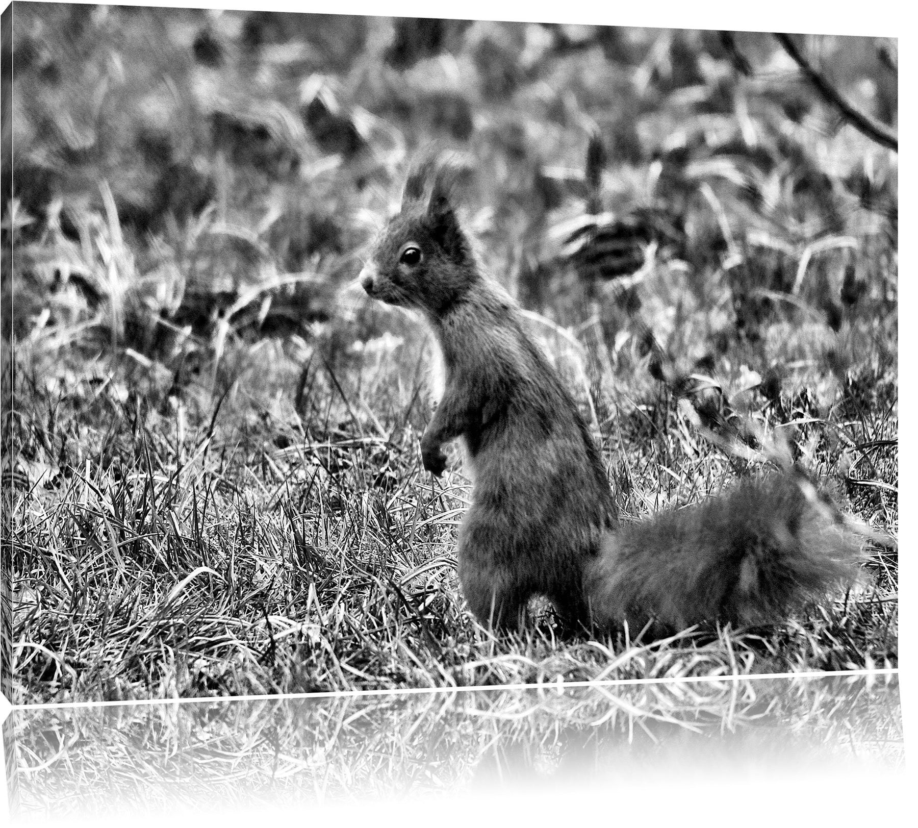 Pixxprint Eichhörnchen auf Boden als Leinwandbild/Grösse: 100x70 / Wandbild/Kunstdruck/fertig bespan