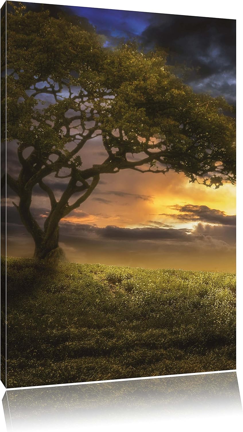 Pixxprint Einsamer Baum schwarz weiss / 100x70cm Leinwandbild bespannt auf Holzrahmen/Wandbild Kunst