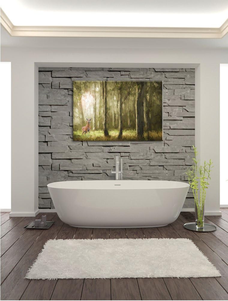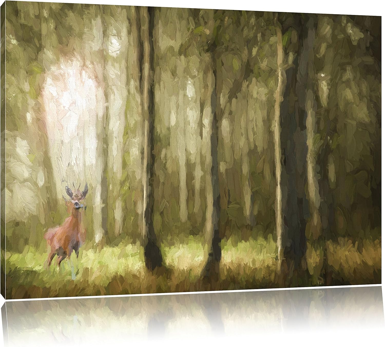 Pixxprint Einsamer Hirsch im tiefen Wald Kunst Pinsel Effekt, Format: 100x70 auf Leinwand, 100x70
