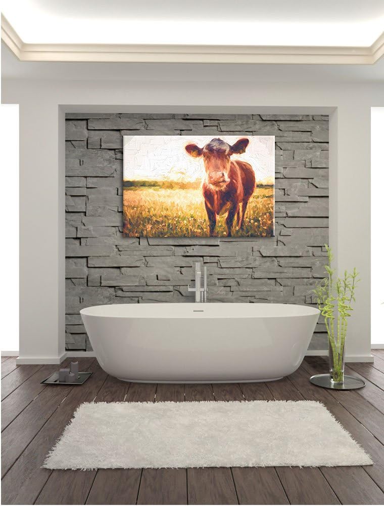 Pixxprint Einzelne Kuh auf Butterblumenwiese in der Abendsonne Kunst Pinsel Effekt, Format: 100x70 a
