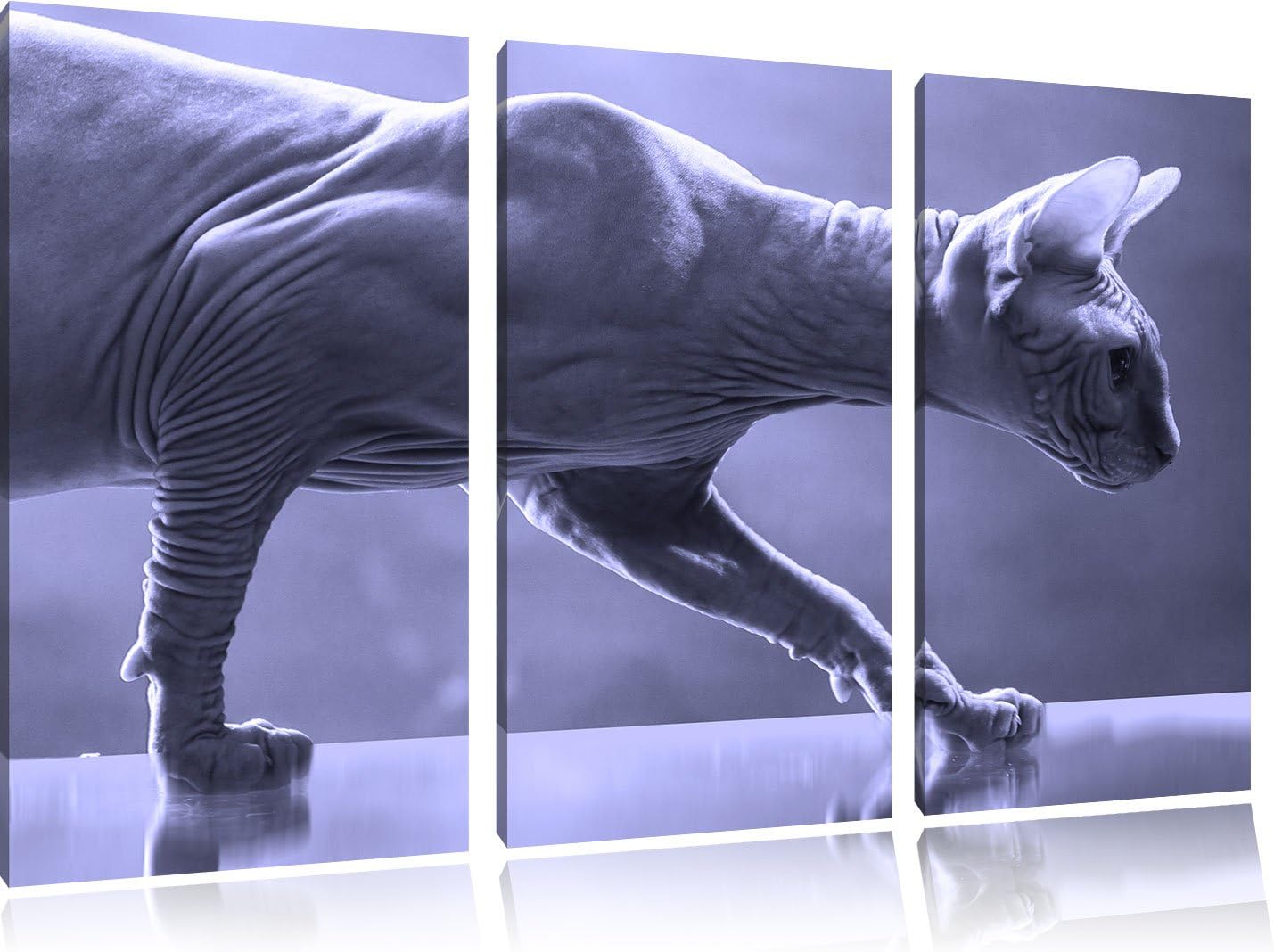 Pixxprint Einzigartige Sphynx Katze Schwarz/Weiss 3-Teiler Leinwandbild 120x80 Bild auf Leinwand