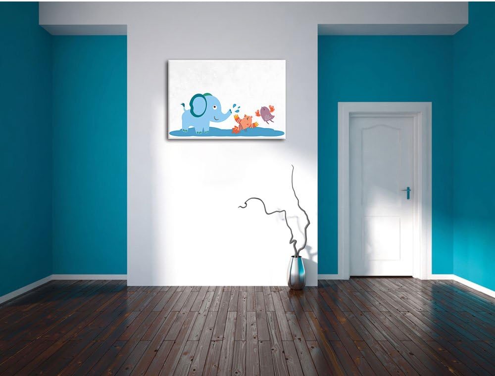 Pixxprint Elefant mit Vögeln als Leinwandbild/Grösse: 100x70 cm/Wandbild/Kunstdruck/fertig bespannt,