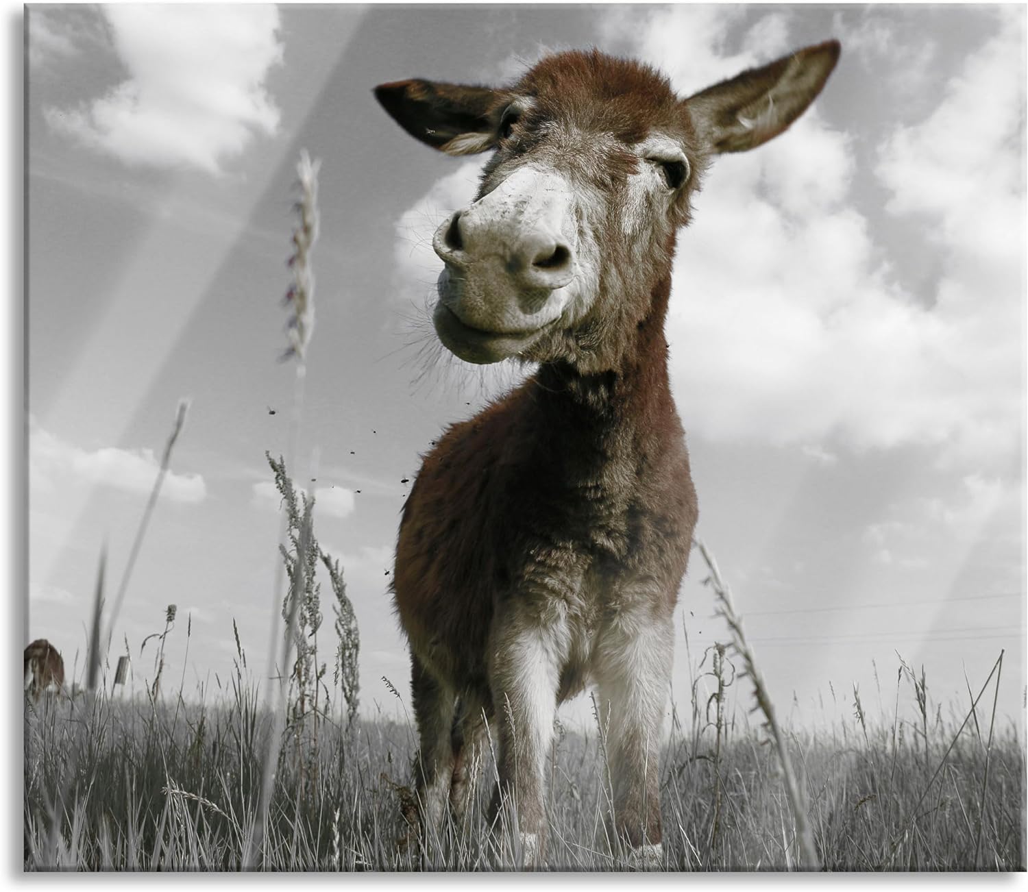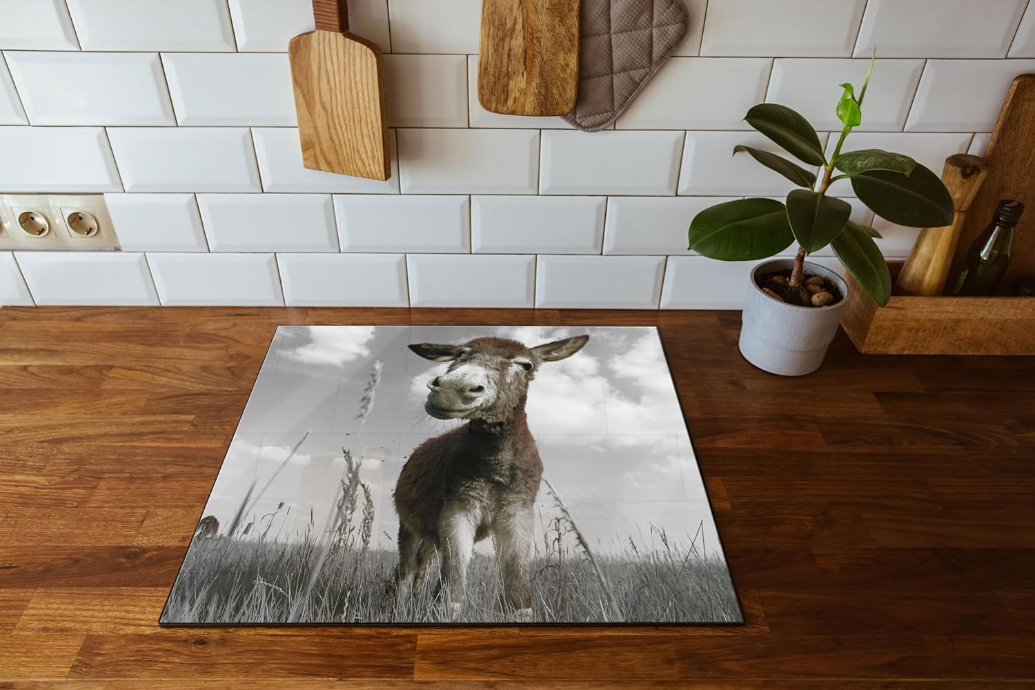Esel im Feld Herdabdeckplatte & Spritzschutz aus Echtglas | Für Herd-Kochfelder | 60x52 cm