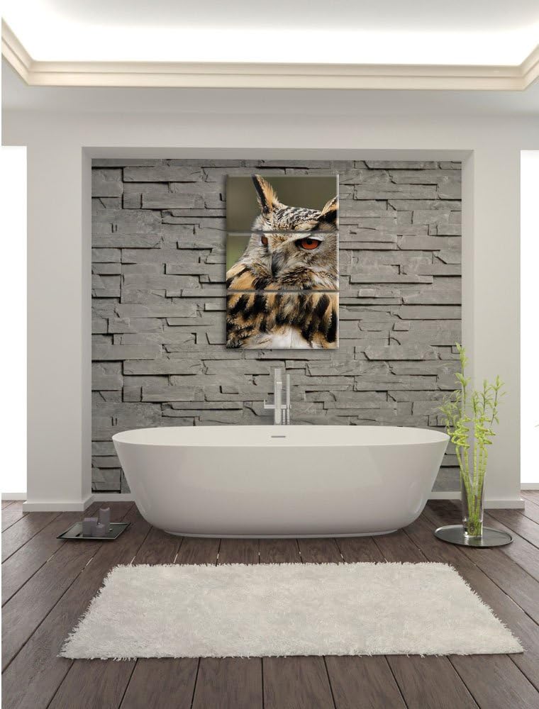 Pixxprint Eule auf AST als Leinwandbild/Grösse: 3 Teilig (120x80) cm/Wandbild/Kunstdruck/fertig besp