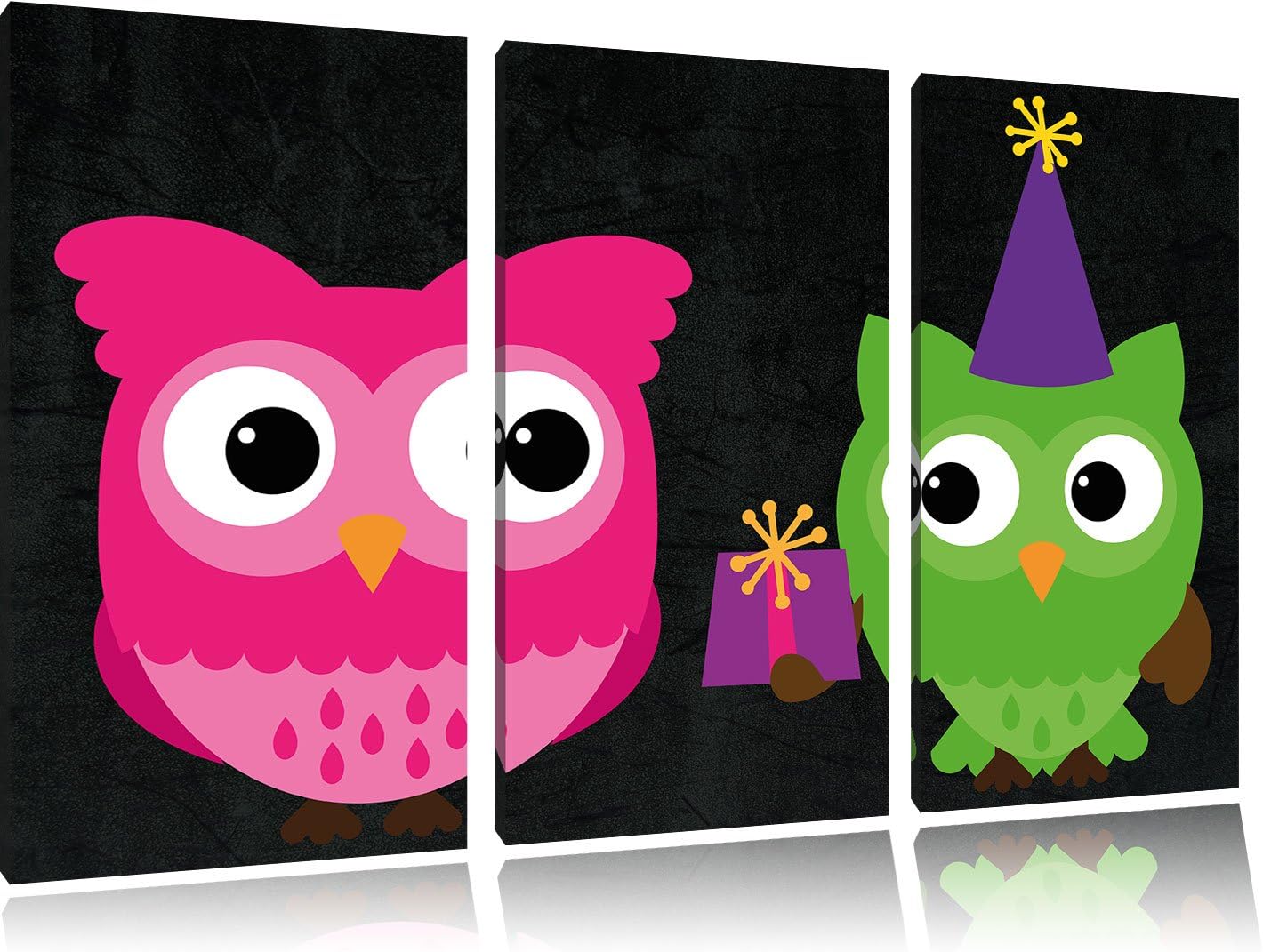 Pixxprint Eulen mit Geschenk als Leinwandbild/Grösse: 3 Teilig (120x80) cm/Wandbild/Kunstdruck/ferti