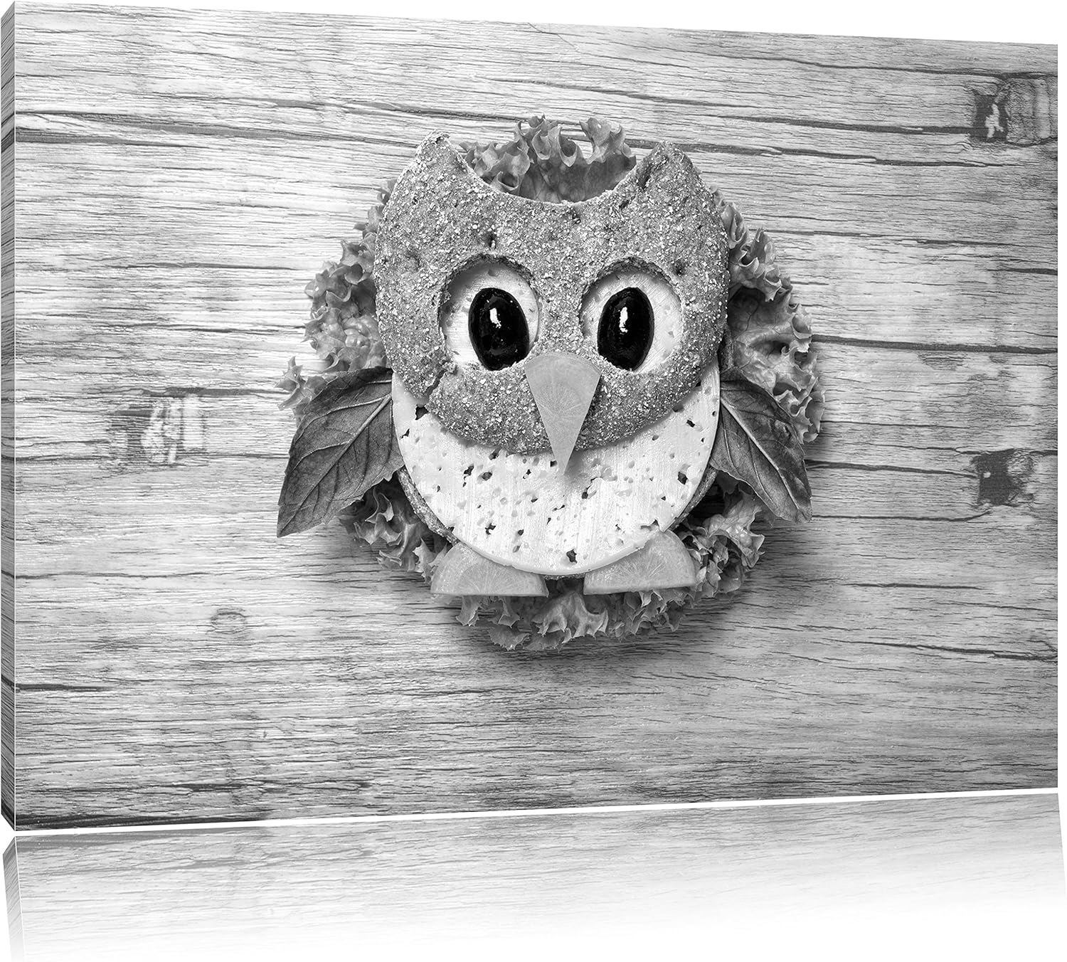 Pixxprint Eulen Sandwich als Leinwandbild | Grösse: 100x70 | Wandbild| Kunstdruck | fertig bespannt,
