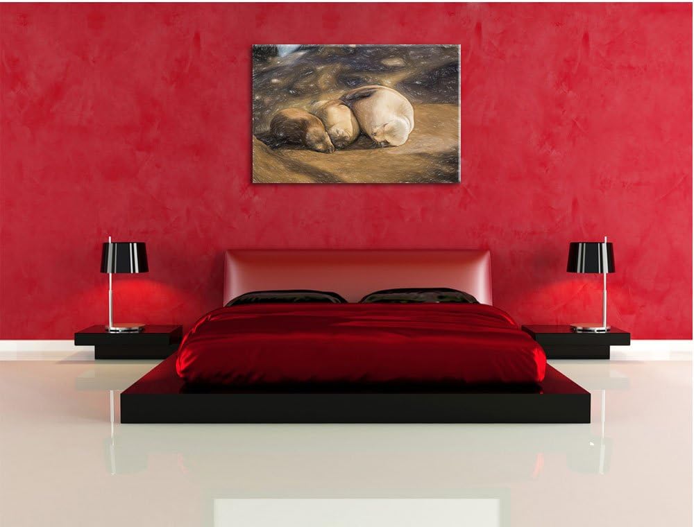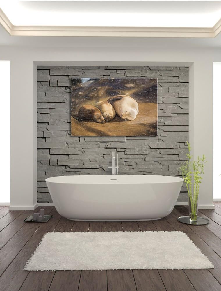 Pixxprint Familie Seelöwen in der Sonne als Leinwandbild/Grösse: 100x70 / Wandbild/Kunstdruck/fertig