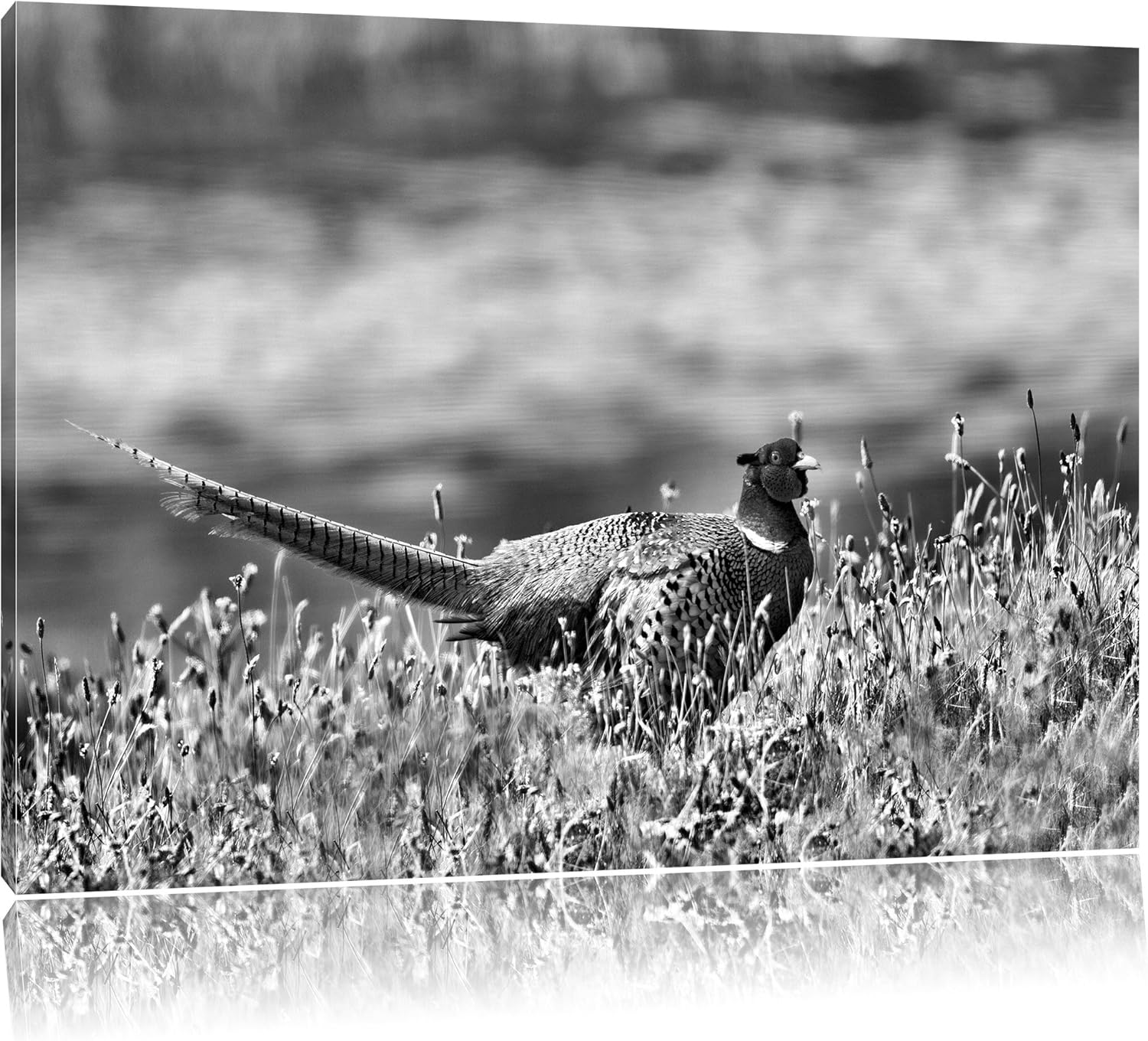 Pixxprint Fasan auf Frühlingswiese / 100x70cm Leinwandbild bespannt auf Holzrahmen/Wandbild Kunstdru