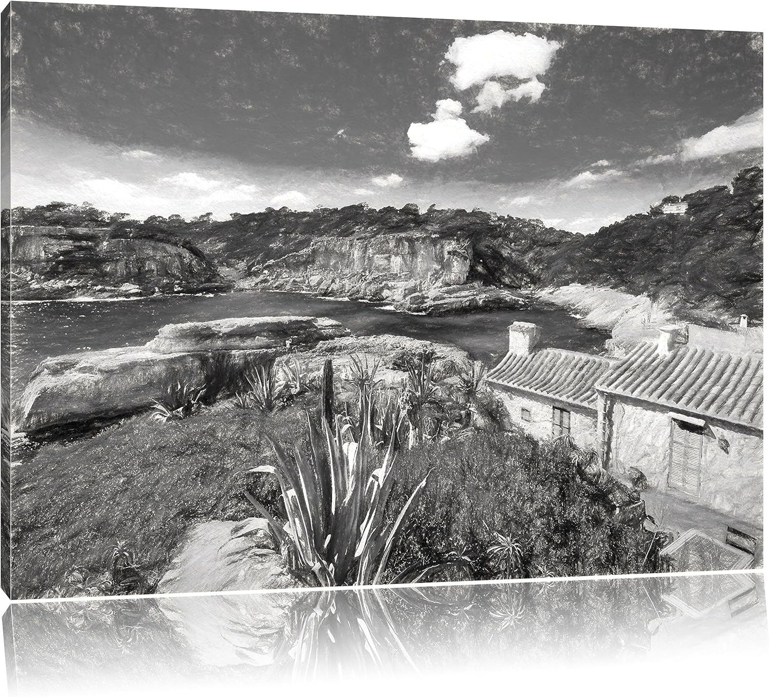 Pixxprint Ferienhaus an der spanischen Küste Kunst Kohle Effekt, Format: 100x70 auf Leinwand, XXL ri