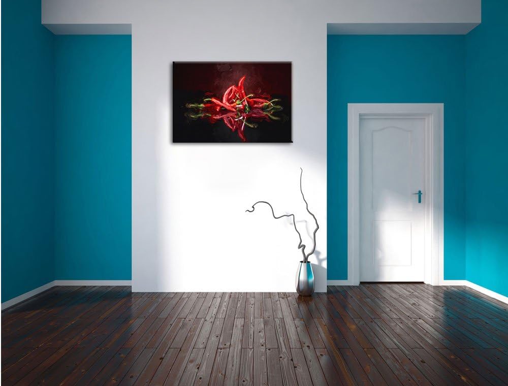 Pixxprint Feurige rote Chili-Choten Kunst Pinsel Effekt, Format: 100x70 auf Leinwand, 100x70