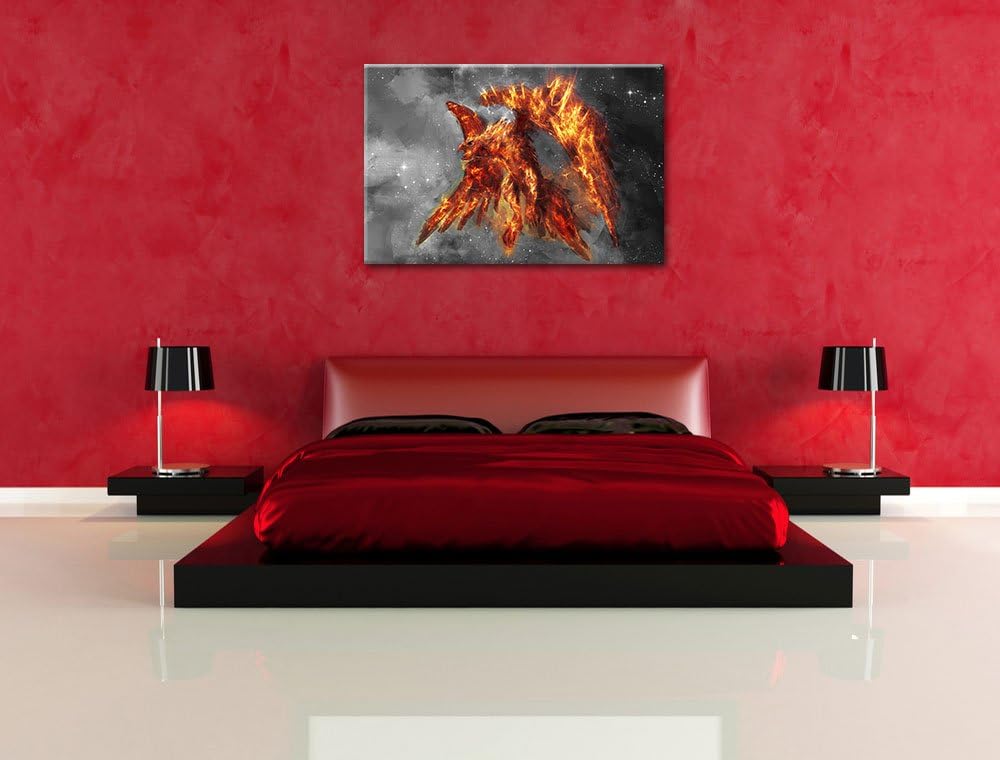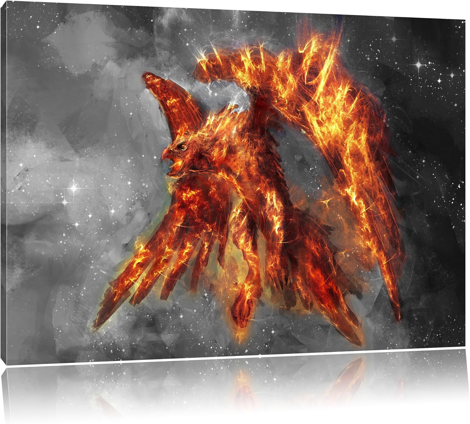 Pixxprint Feuriger Adler als Leinwandbild/Grösse: 100x70 cm/Wandbild/Kunstdruck/fertig bespannt, 100