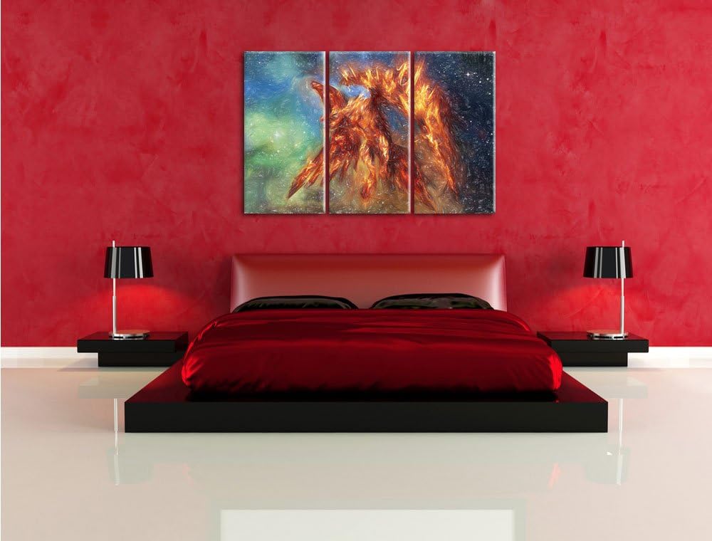Pixxprint Feuriger Adler als Leinwandbild/Grösse: 3 Teilig (120x80) cm/Wandbild/Kunstdruck/fertig be