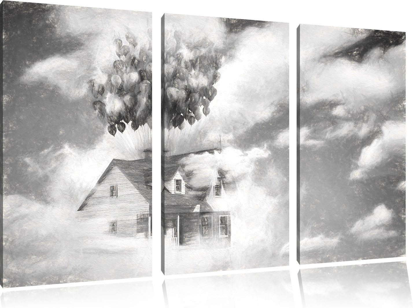 Pixxprint fliegendes Haus mit Luftballons als Leinwandbild/Grösse: 3 Teilig (120x80 cm) cm/Wandbild/